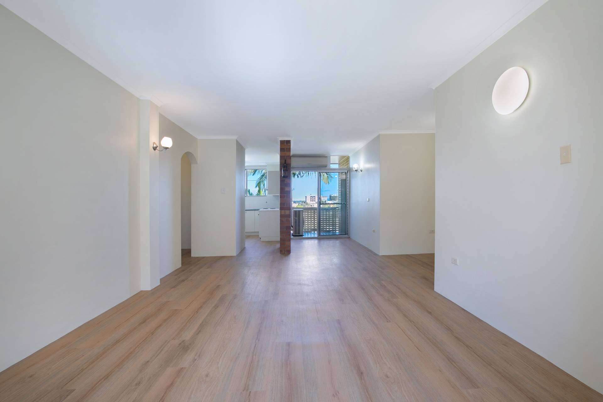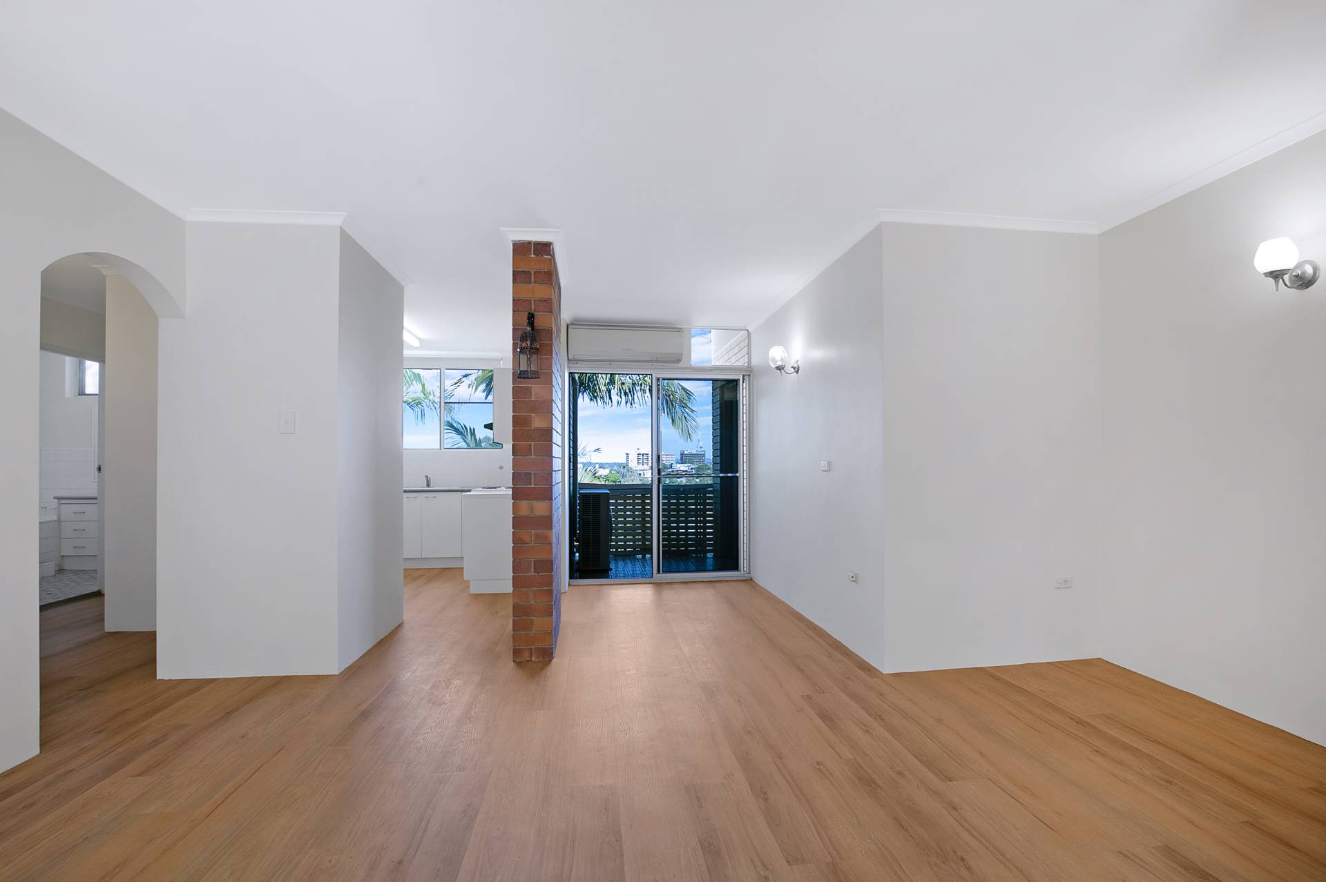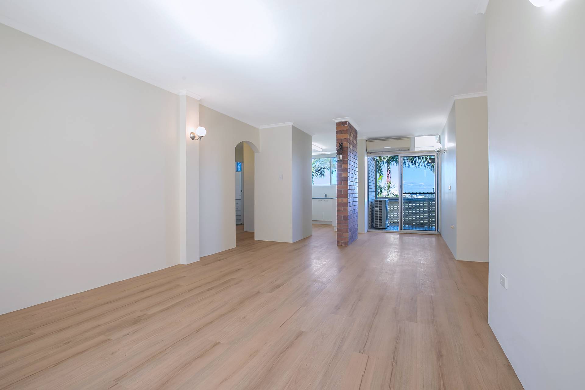 The apartment has new timber like floorings and new wall paints. A split system air conditioner in the living area cools the whole apartment.