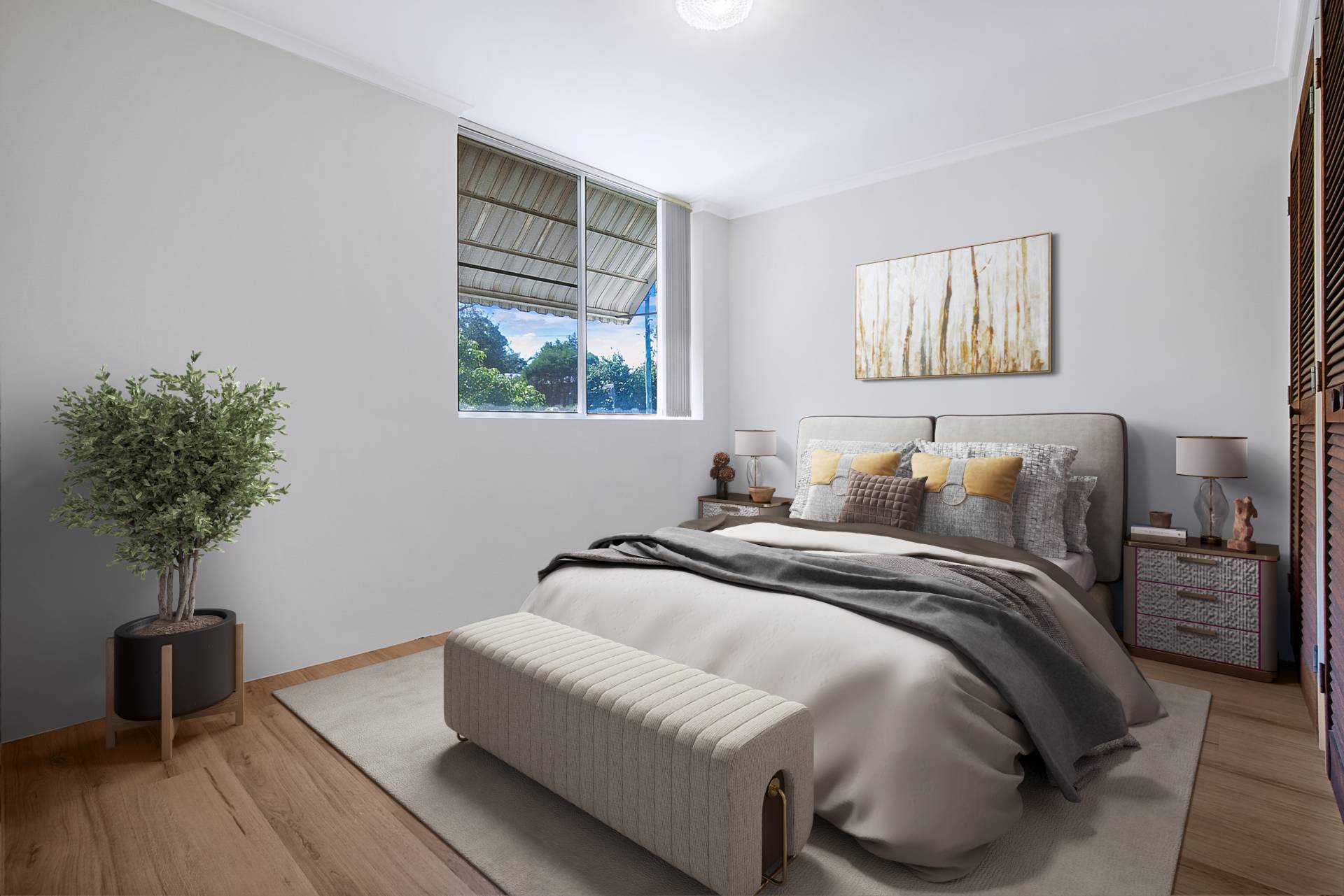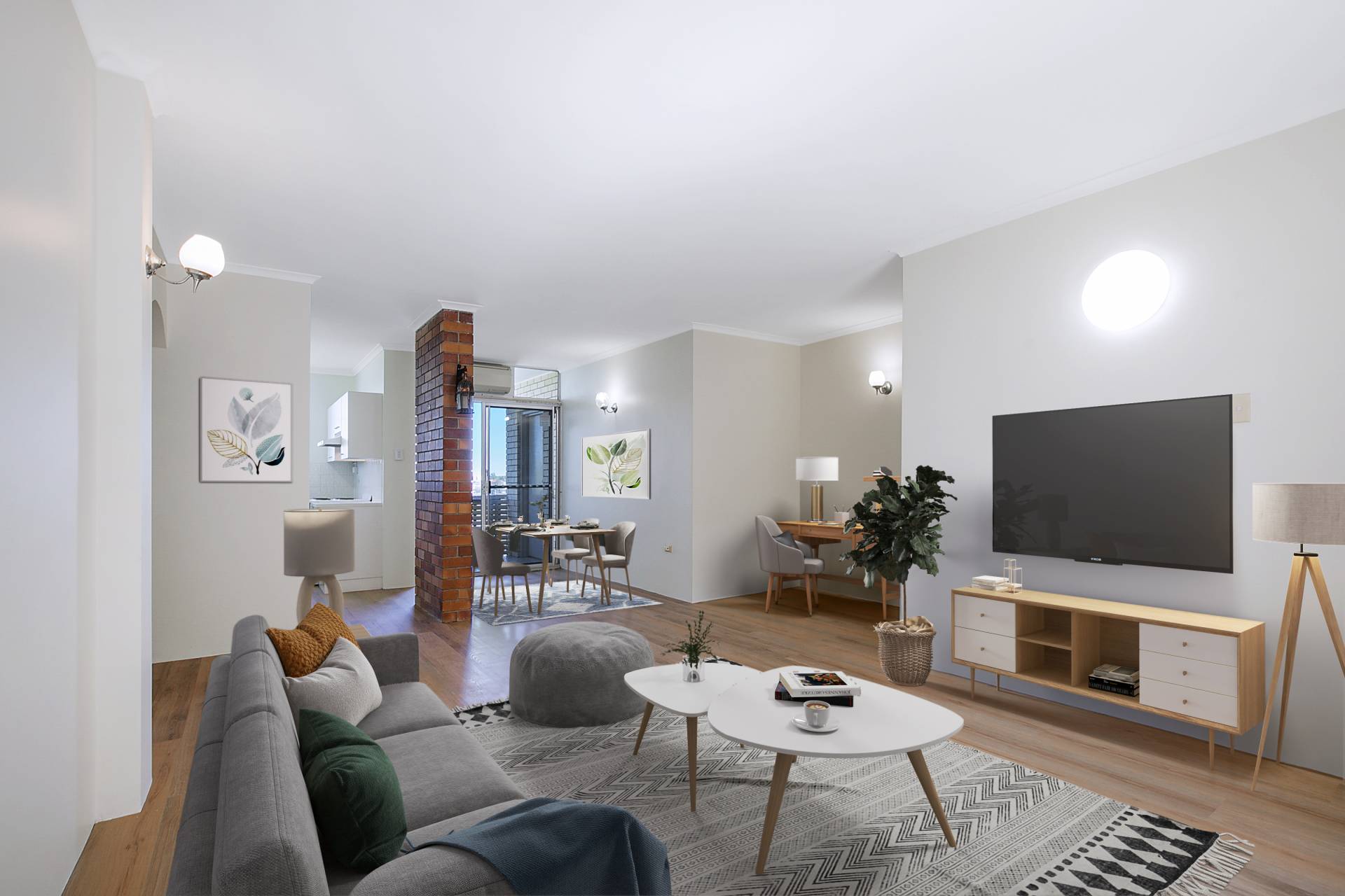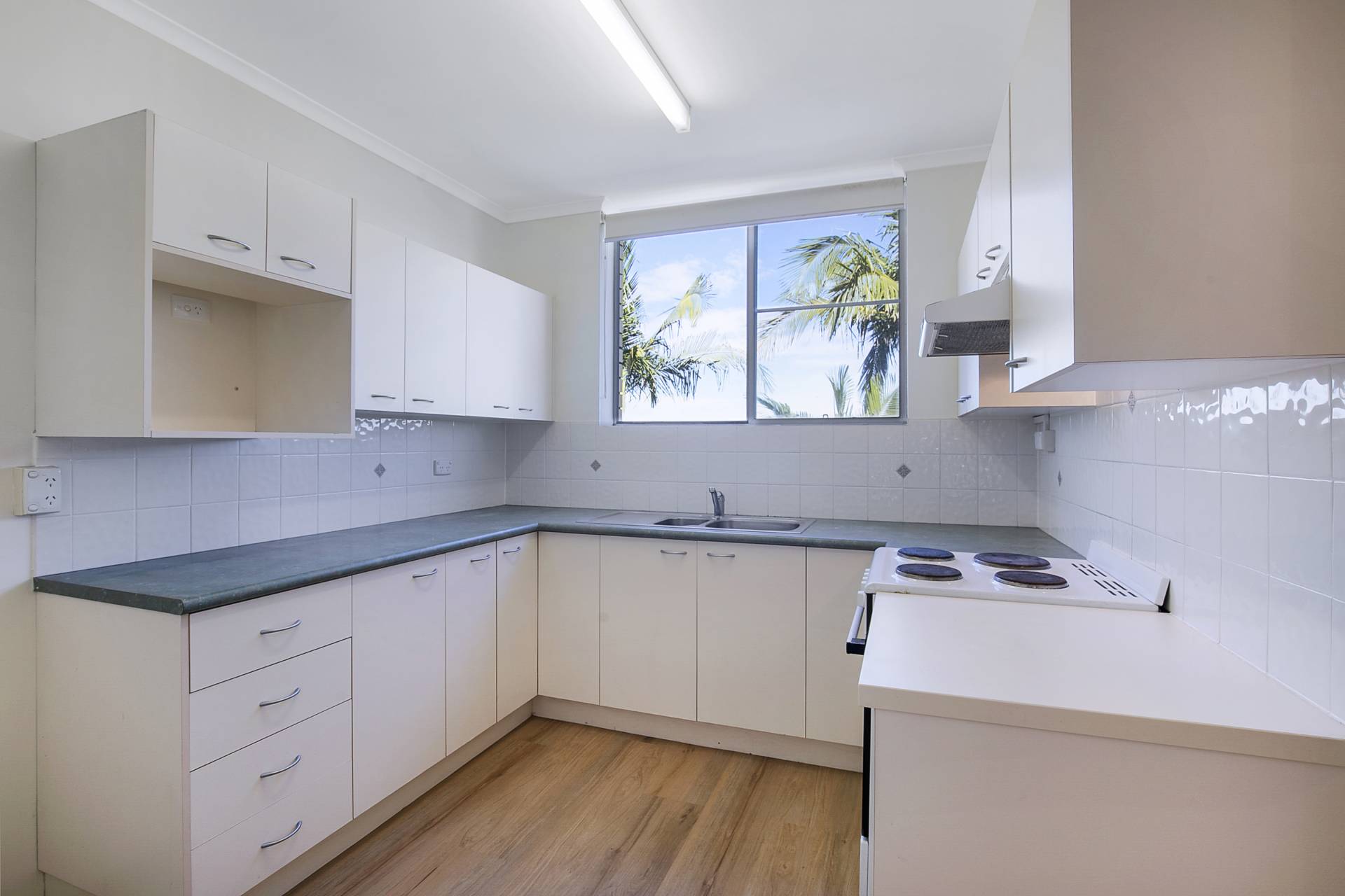 The apartment has new timber like floorings and new wall paints. A split system air conditioner in the living area cools the whole apartment.