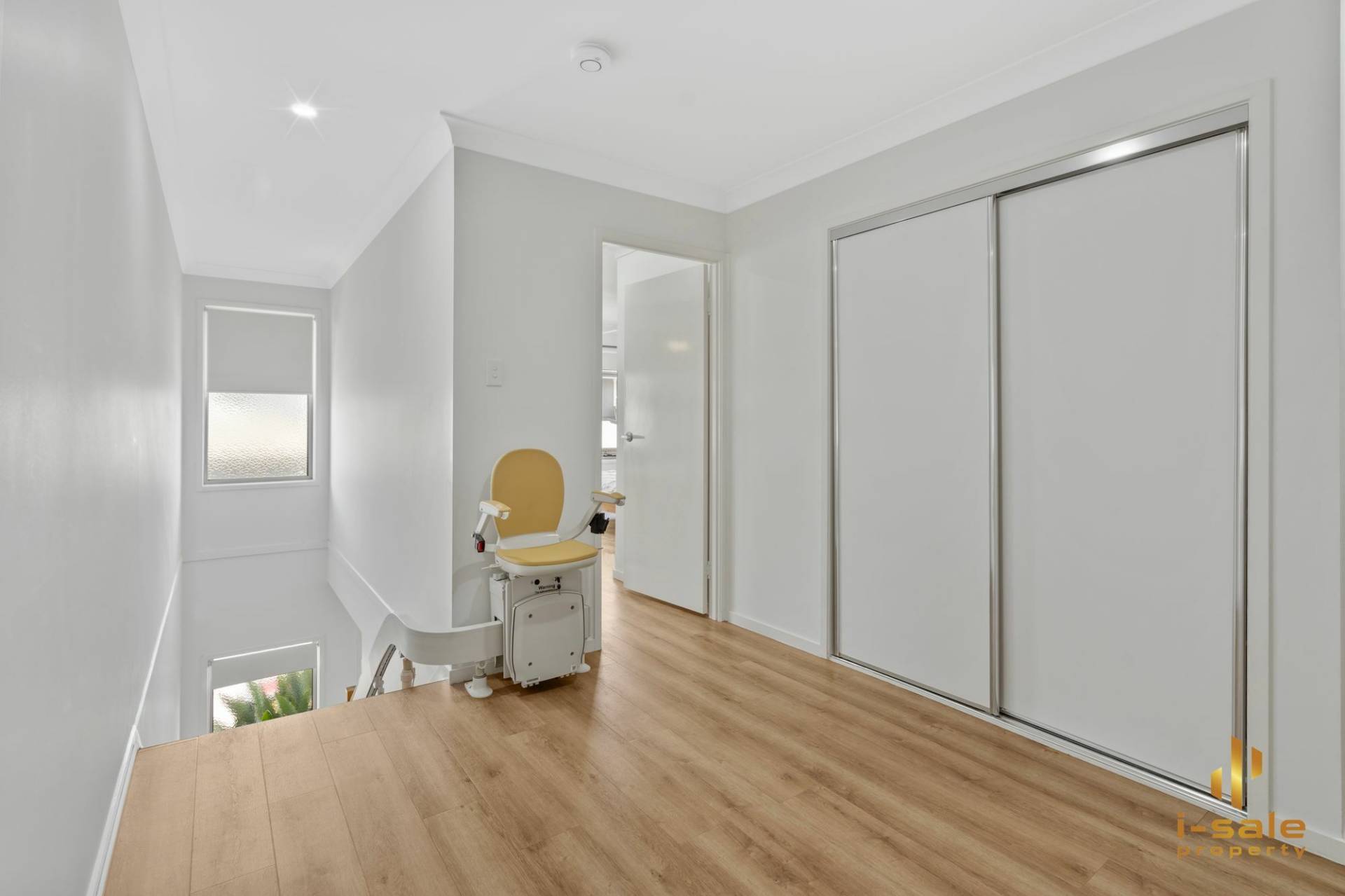 Ascending the stairs, you'll find a cozy family area perfect for relaxation.