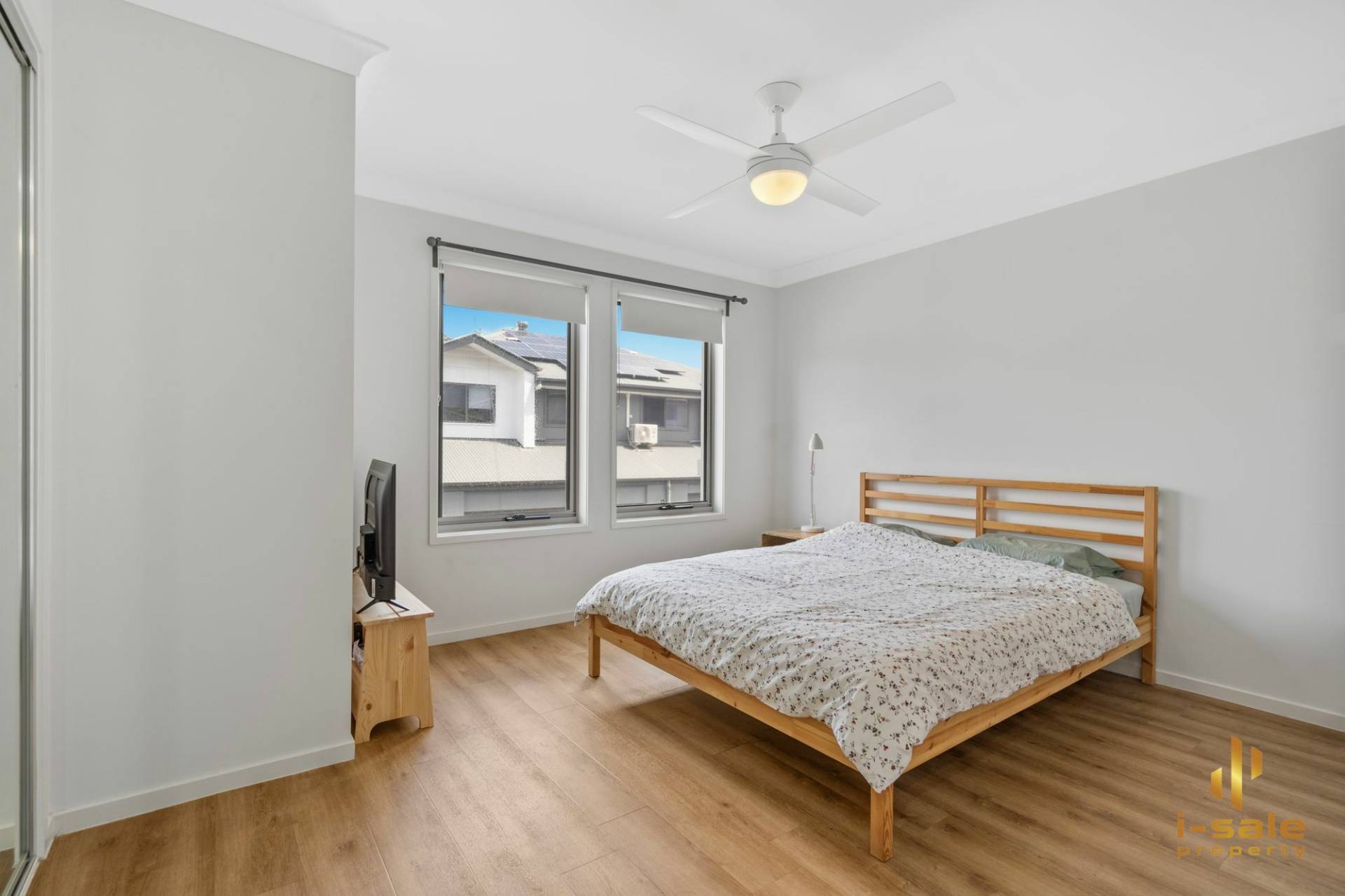 The master bedroom is a true retreat, boasting an ensuite for added privacy and convenience, as well as air conditioning for those warm summer nights. The additional two bedrooms are generously sized, offering plenty of space for family, guests, or a home office.