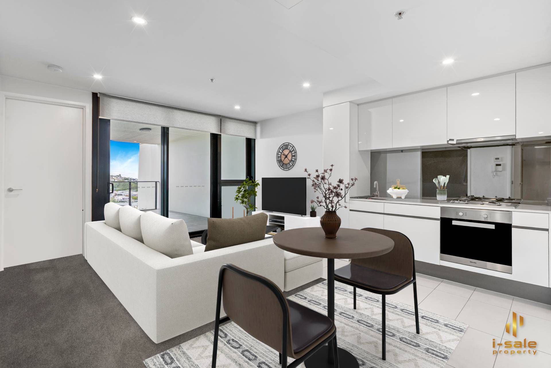 Positioned high on the 9th floor, this contemporary design apartment represents comfortable living with high end fittings. From the moment you step inside, you'll be captivated by the elegance and sophistication of this home. The spacious open-plan layout is filled in natural light, with sleek, modern tones that create an inviting ambiance. The gourmet kitchen is a culinary dream, featuring stone benchtops, stainless steel gas cooktop and abundance of cupboard space. Step onto your private balcony and soak in the breathtaking views! Additional Features: