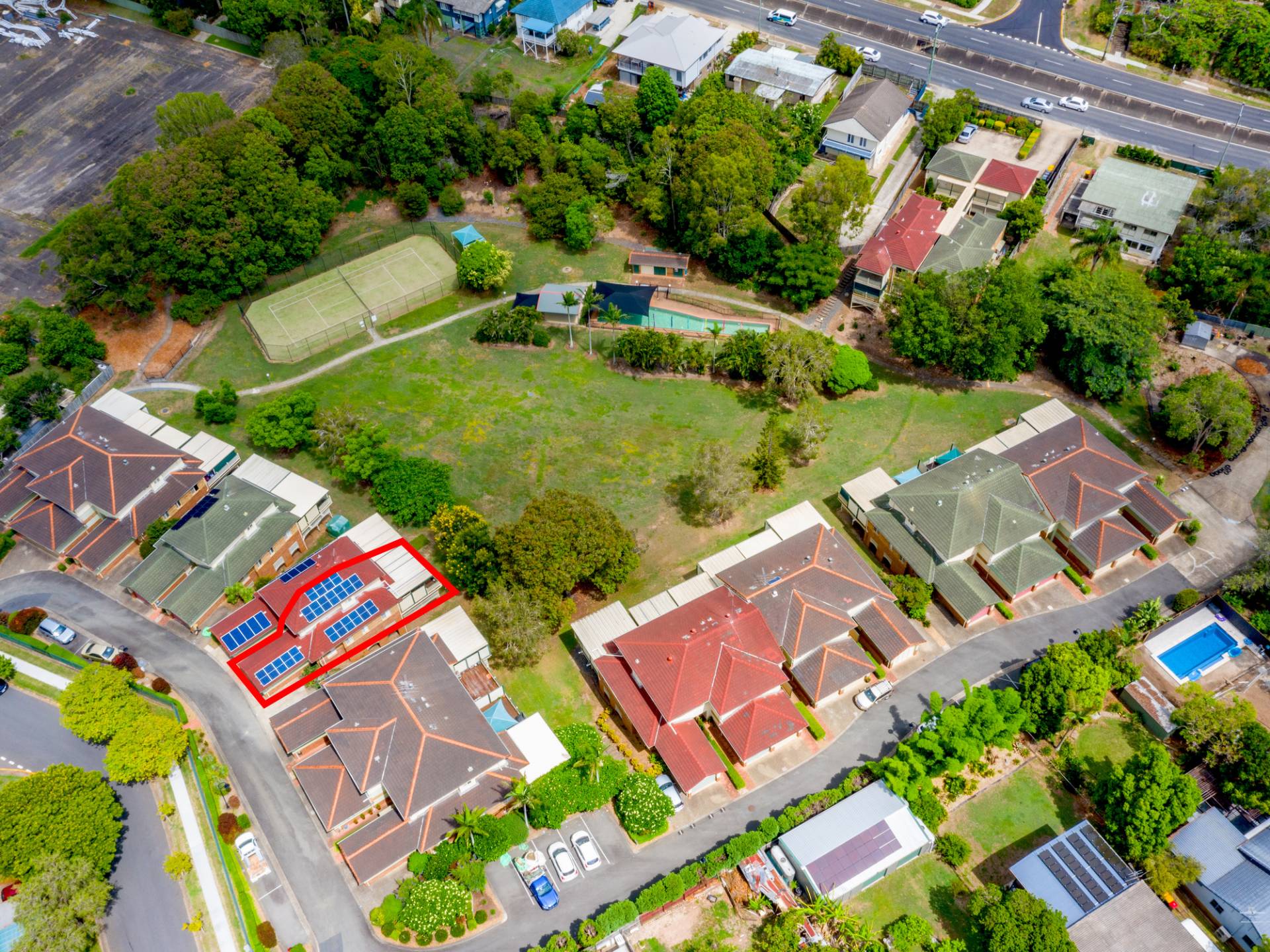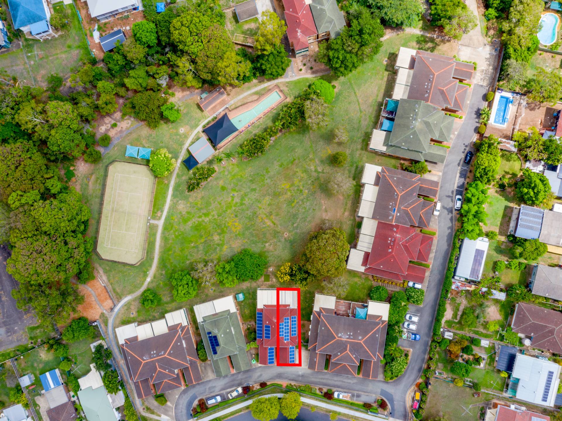 This complex is so very unique for a townhouse development.� It appears quite conventional, when viewed from the street, but at its rear is a huge private facility�which affords�its residents a�full sized & fenced tennis court; a shaded swimming pool complete with 20M lap lane, bbq-gazebo and change room, and its own manicured� & landscape private park, large enough to enjoy games of family cricket or footy, fly a kite or throw a frisbee. It is a great and safe place to raise a family, all of this for just 28 residences�and all of the hard work is taken care of for you.