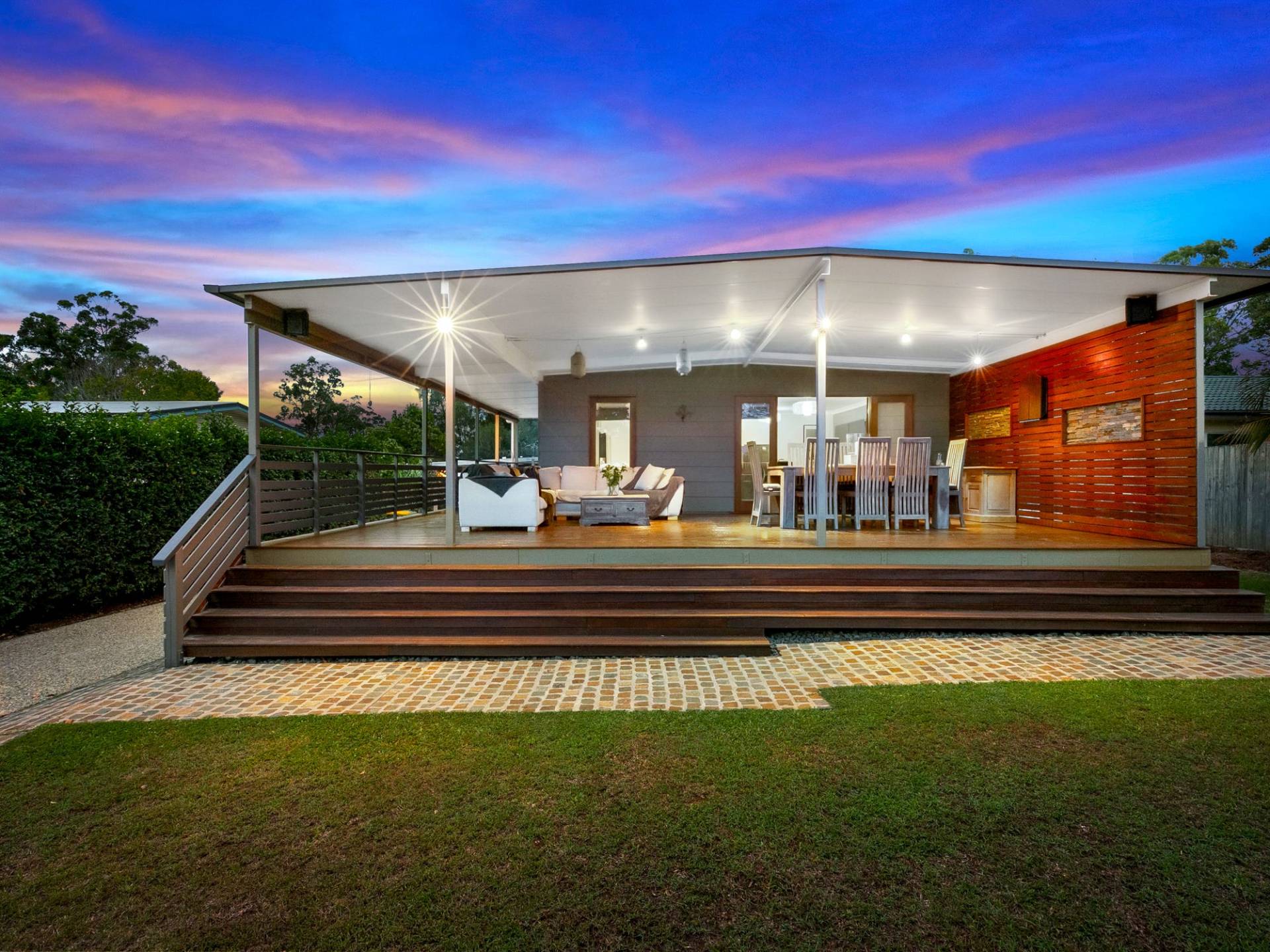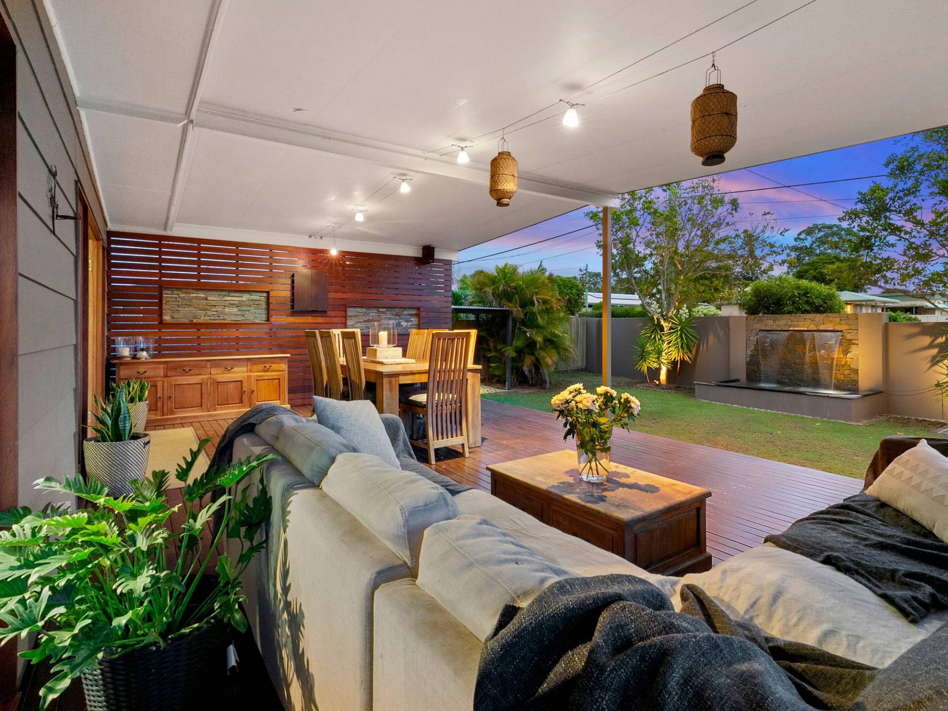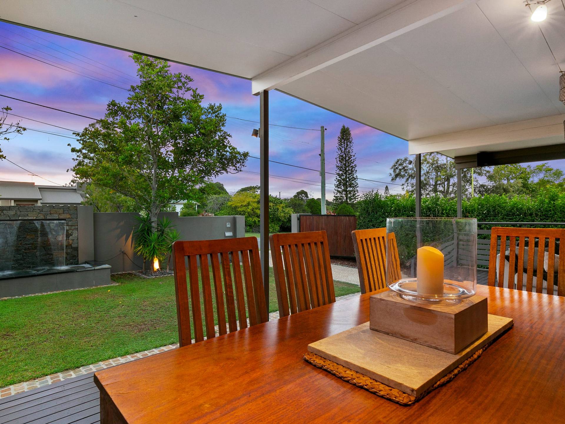 - Large, Covered alfresco area overlooking front yard w/ space for dining table and outdoor lounge suite