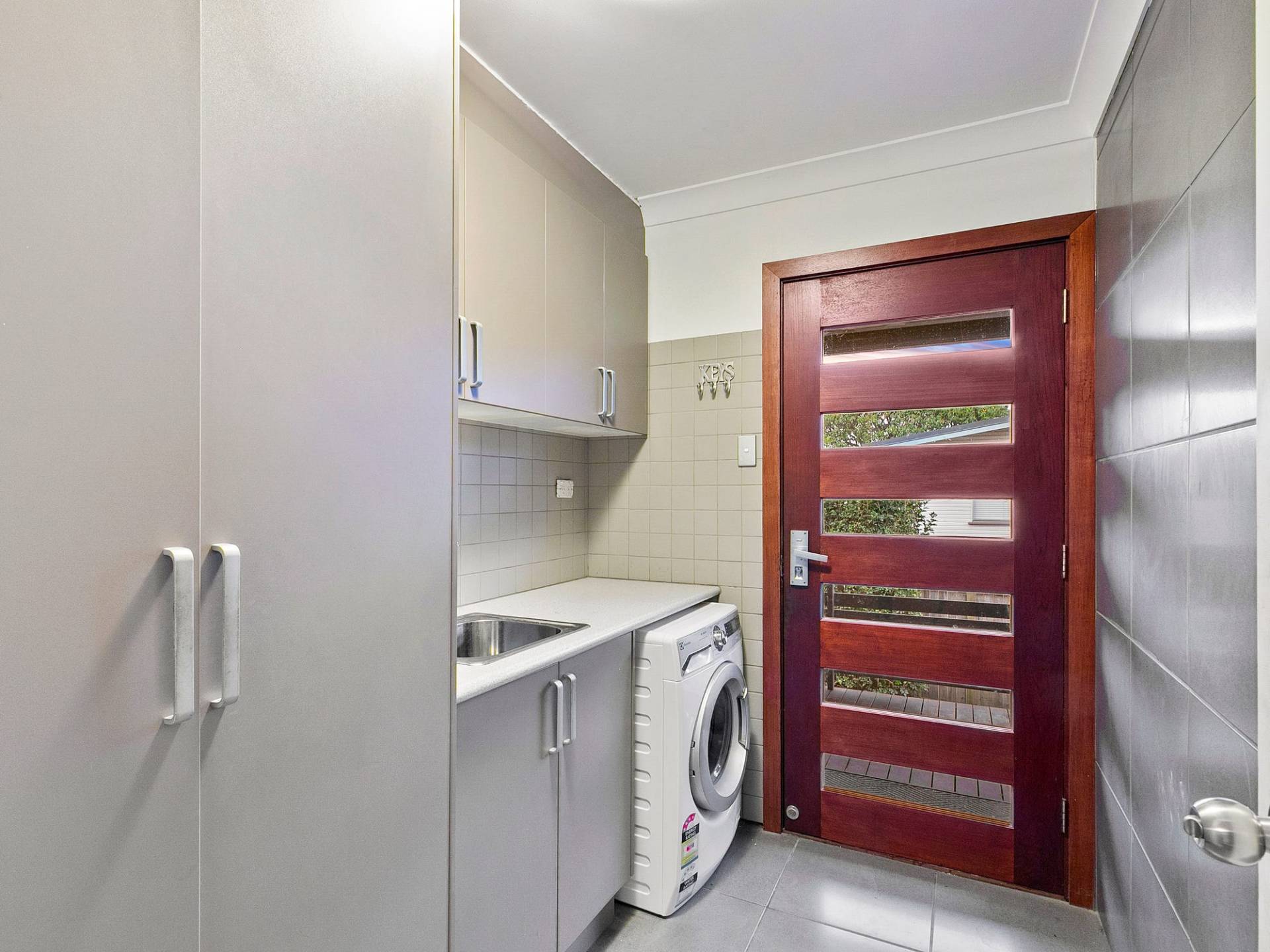 - Laundry room w/ sink, space for washer / dryer, storage cupboards and direct access to side veranda