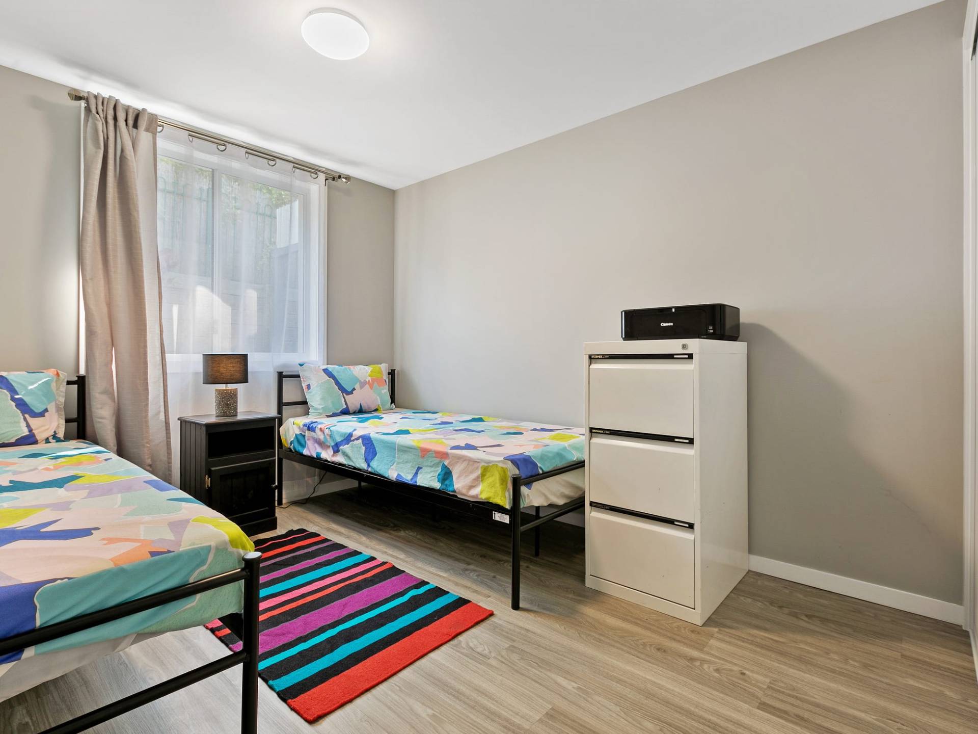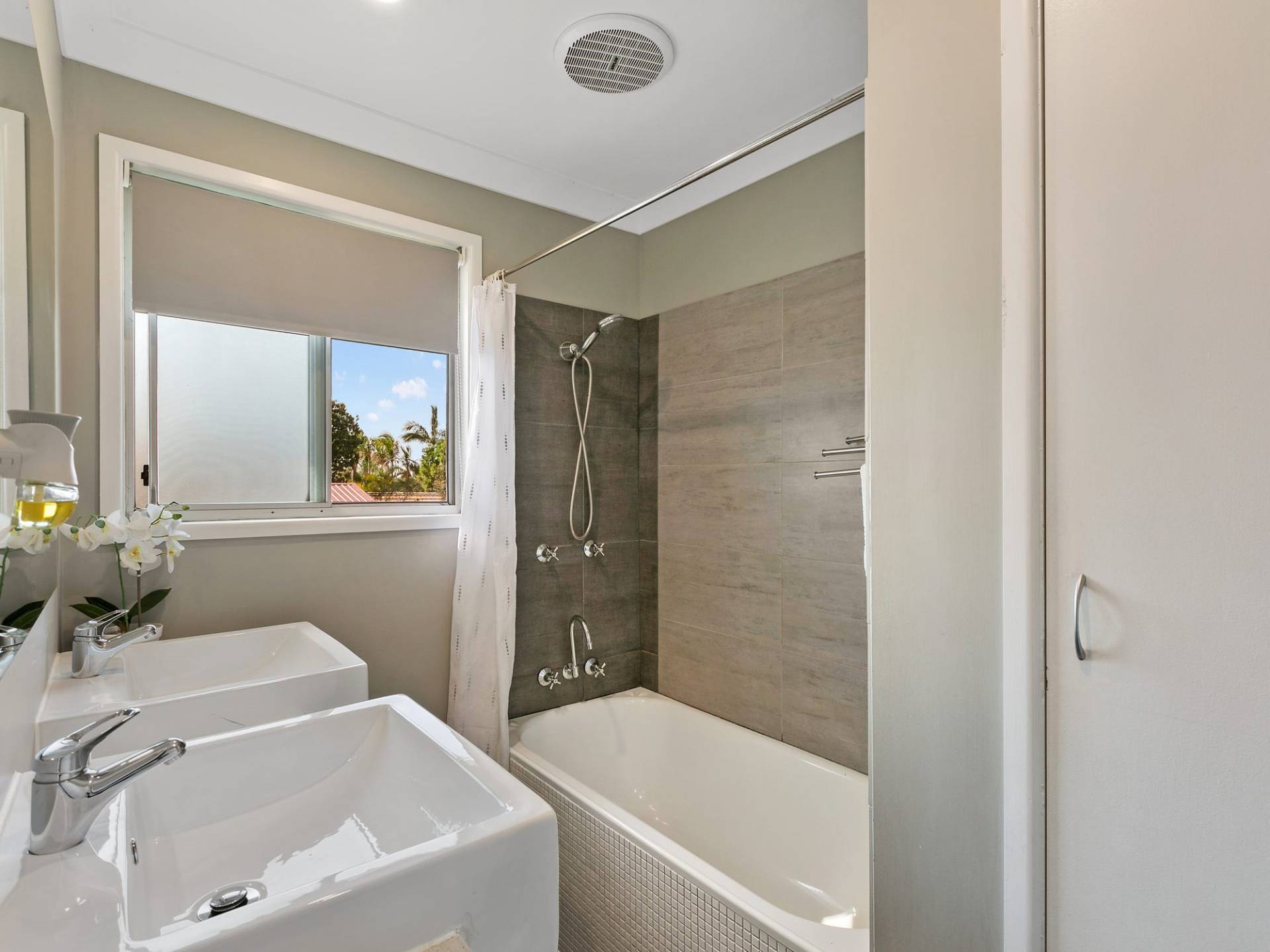- Bathroom w/ linen cupboard, bath / shower combo, separate toilet and dual vanity