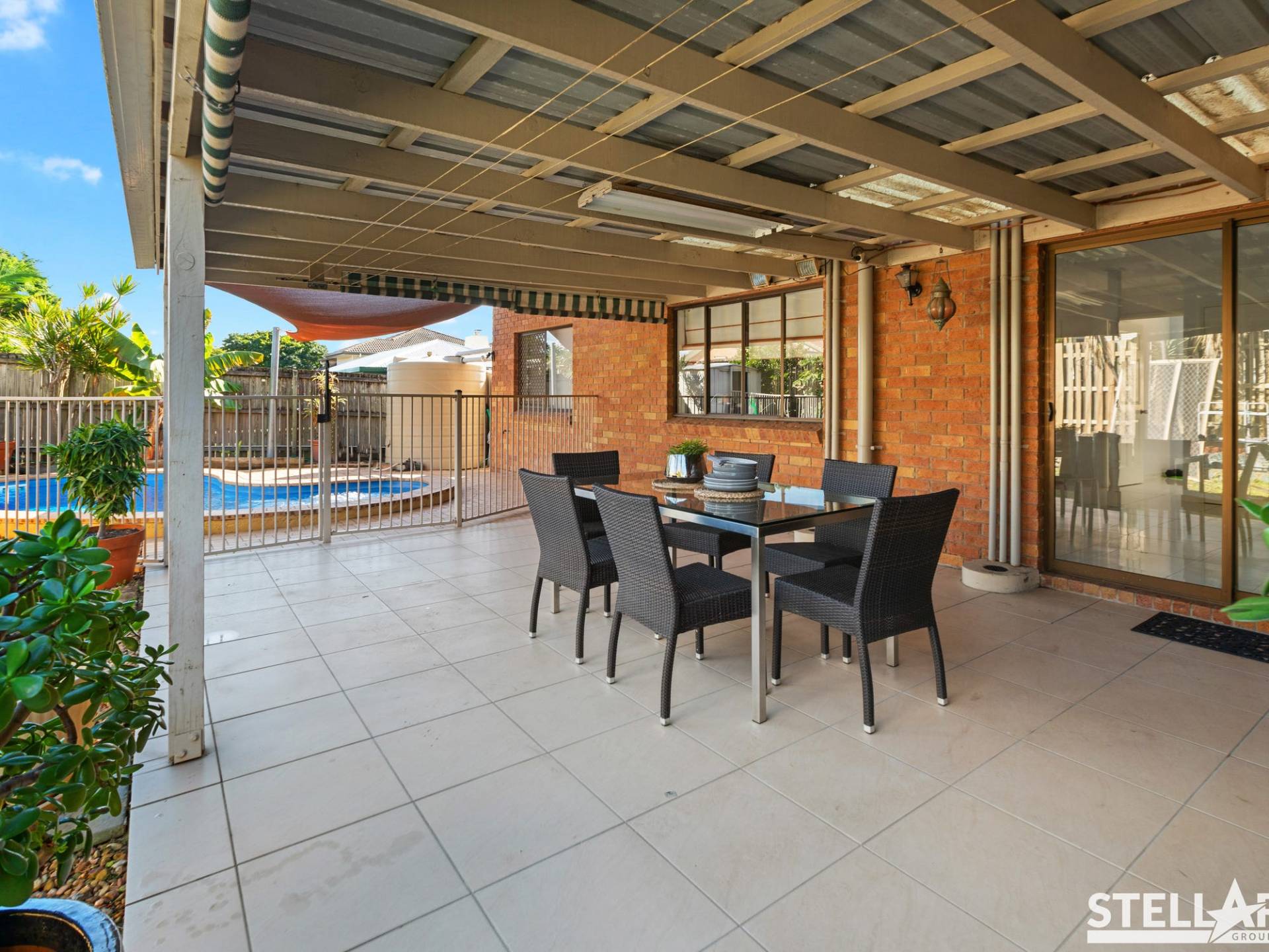-�The open plan living backs out to a covered entertainment area overlooking the swimming pool and easy to maintain backyard.��