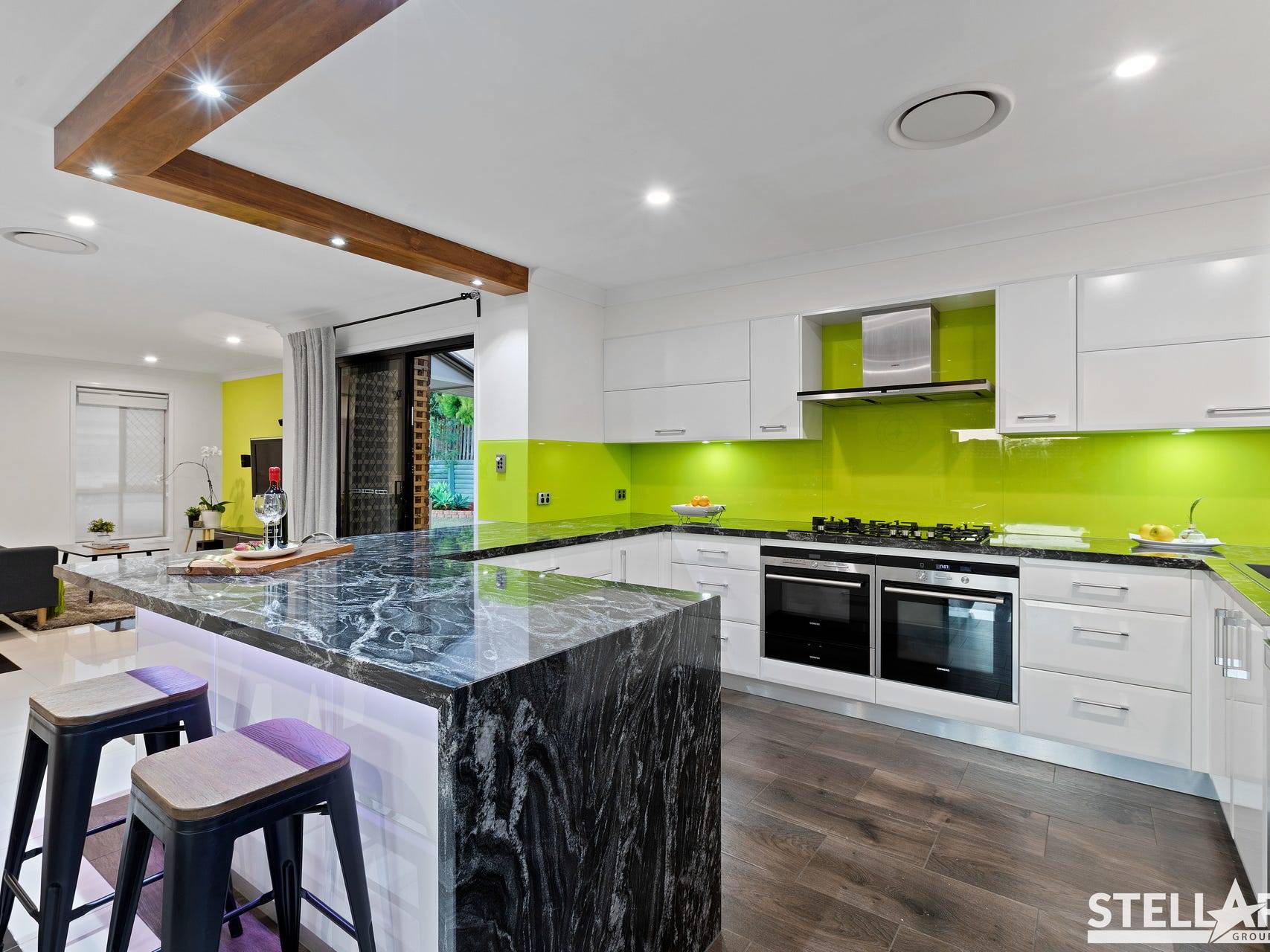 - Extra wide customised Granite (exotic range) Kitchen benchtop with Waterfall Edge