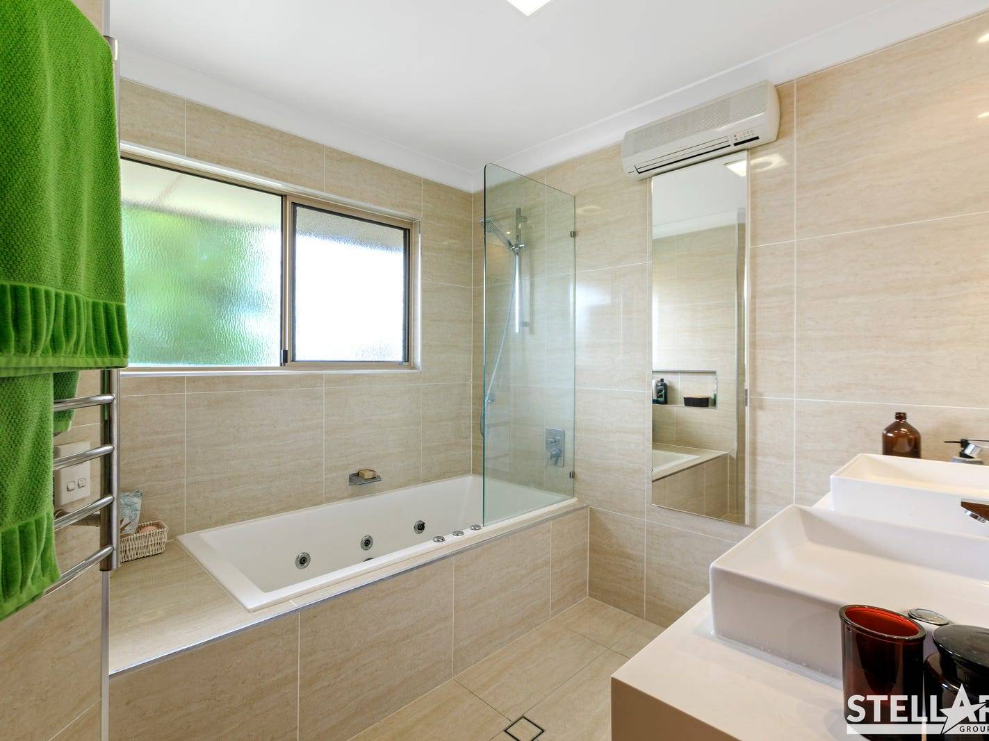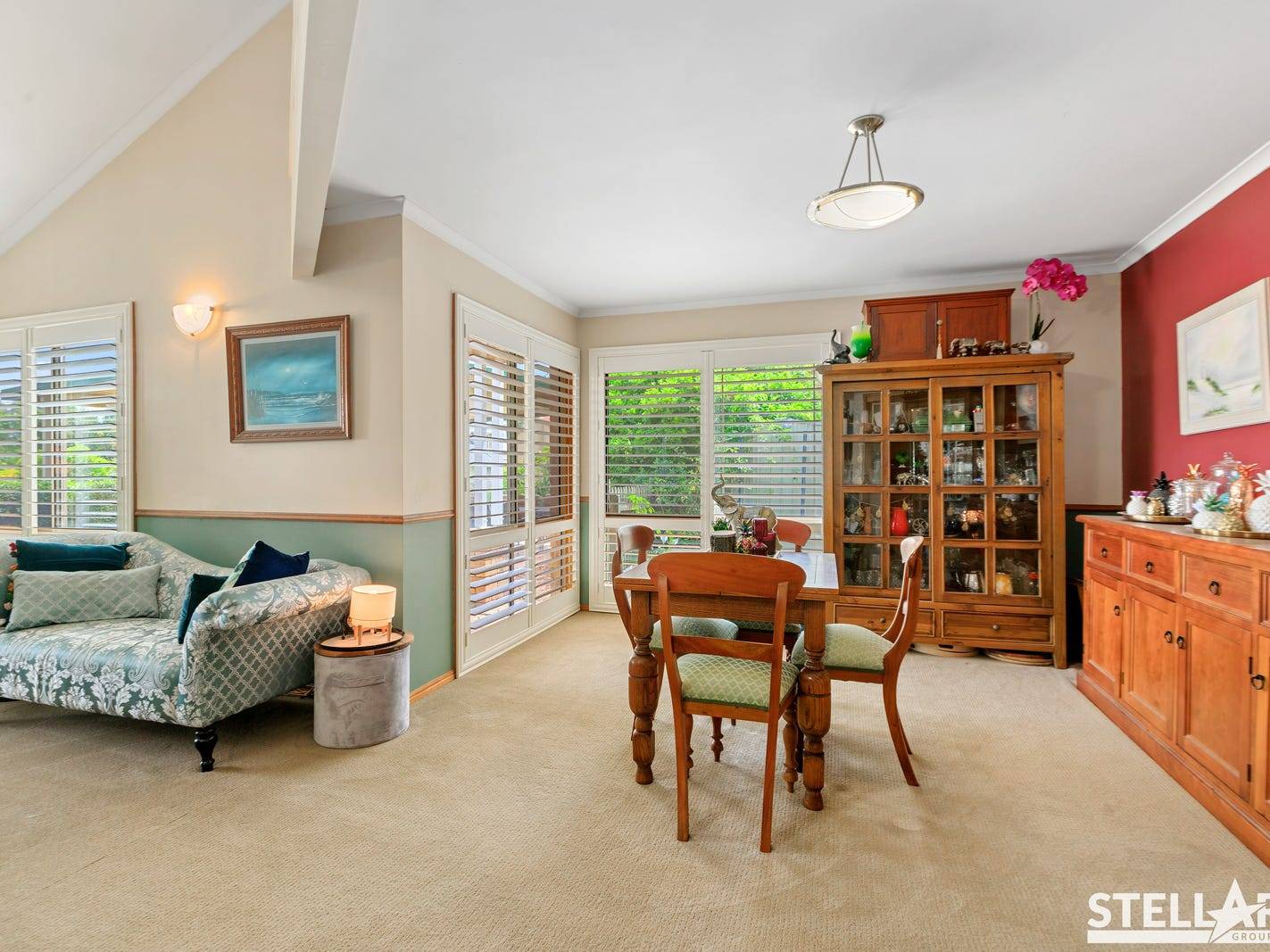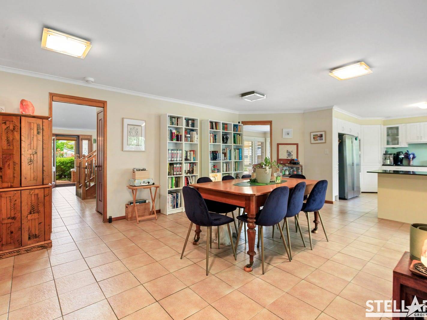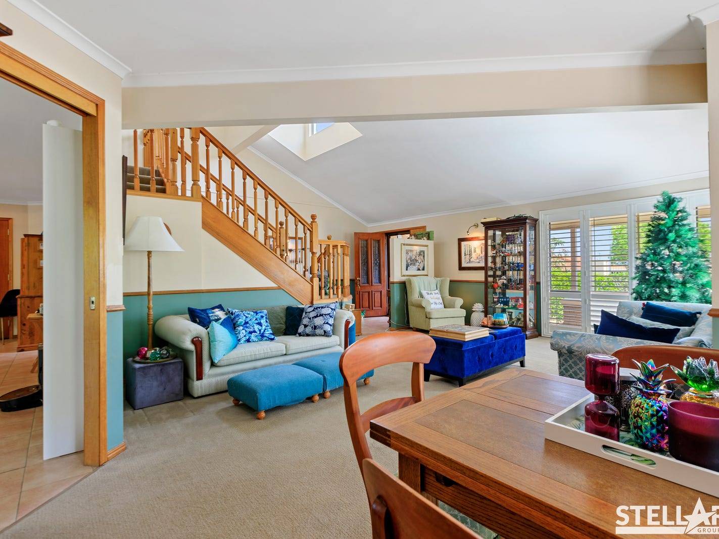 Welcoming you into 43 St Clair Crescent Wishart are timber doors with stained glass panels. There's an entry foyer with high ceilings, another striking feature is the staircase with timber rails. Off to the left are the formal lounge and dining with plantation shutters on all windows. The dining has easy access to the well appointed kitchen including long wrap around stone benches, double fridge/freezer space, electric stove and separate oven, large family pantry, soft close cabinetry, dishwasher, double sink with garbage disposable plus a reverse osmosis water filter system.