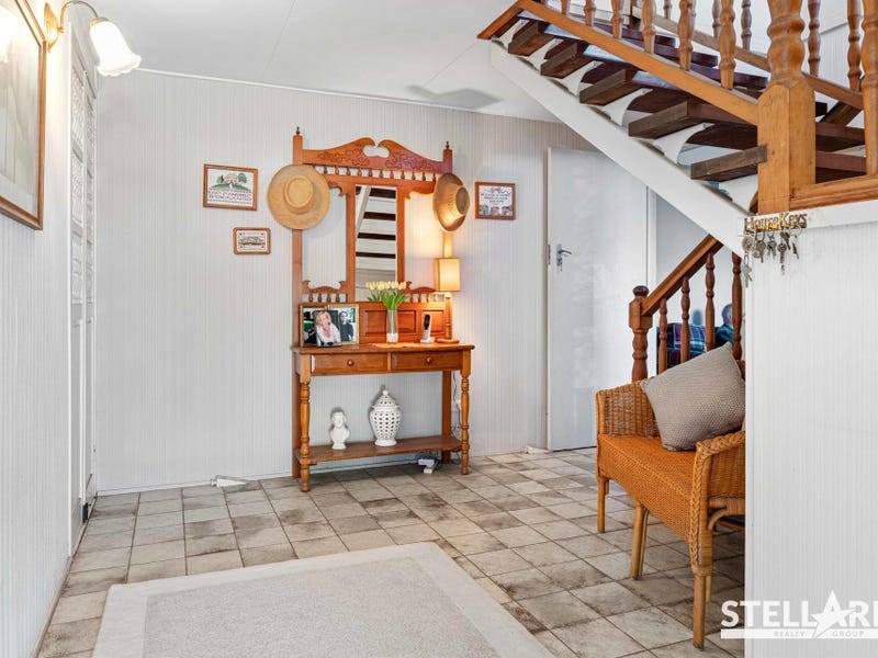 You are greeted by double doors to a spacious entry foyer with access to the downstairs living spaces and stairs to the upper level. Upstairs you will find an open plan formal dining and lounge with decorative ceiling cornices. Adjoining this is the casual dining area and kitchen with large pantry, electric cooking, and dishwasher. There are three bedrooms, two of these open directly onto the front balcony with gorgeous original decorative tiled flooring and views towards Mount Gravatt Mountain. The master bedroom also has built-in cupboards and a ceiling fan. The family bathroom has a shower and separate bath plus there is also a separate toilet.