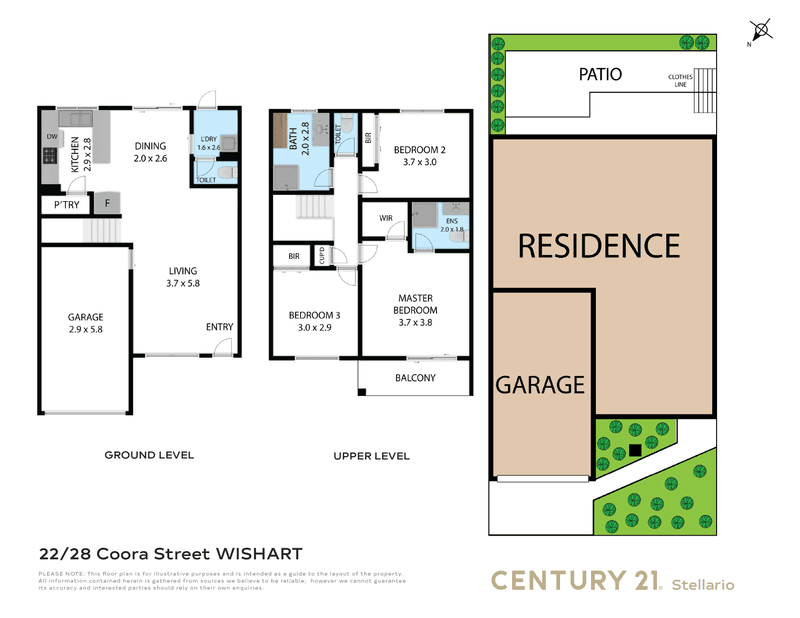 You enter the home into the air-conditioned open plan living, kitchen and dining area which flow onto the outdoor patio / courtyard. On the upper level there are three good size bedrooms, all are air-conditioned and have built-ins; the master bedroom also has an ensuite, walk-in-robe and a private balcony. The main bathroom has a shower, vanity and large linen cupboard plus there is a separate toilet. There's plenty of storage with clever cupboards above the internal stairs and another linen cupboard in the hall.