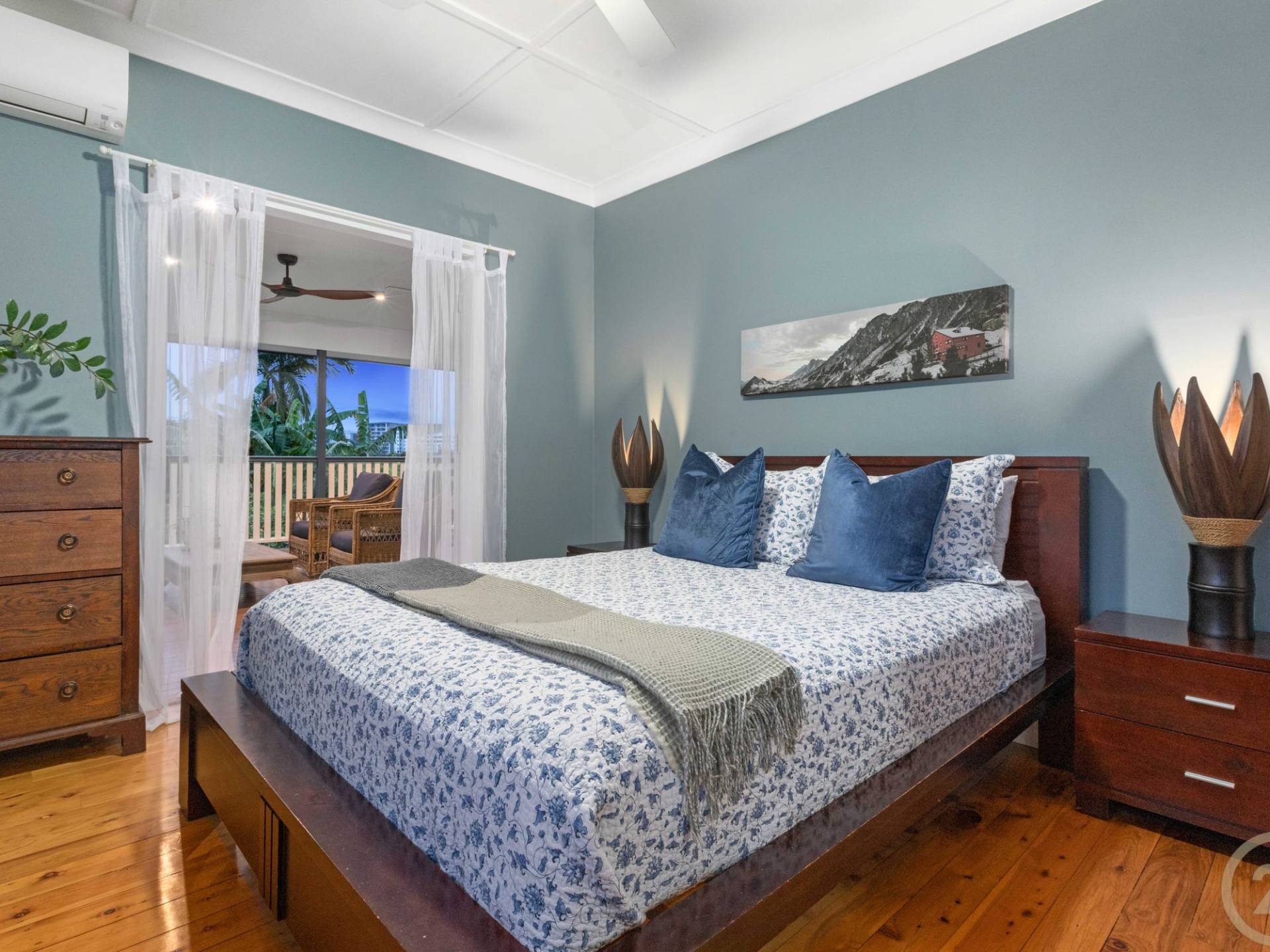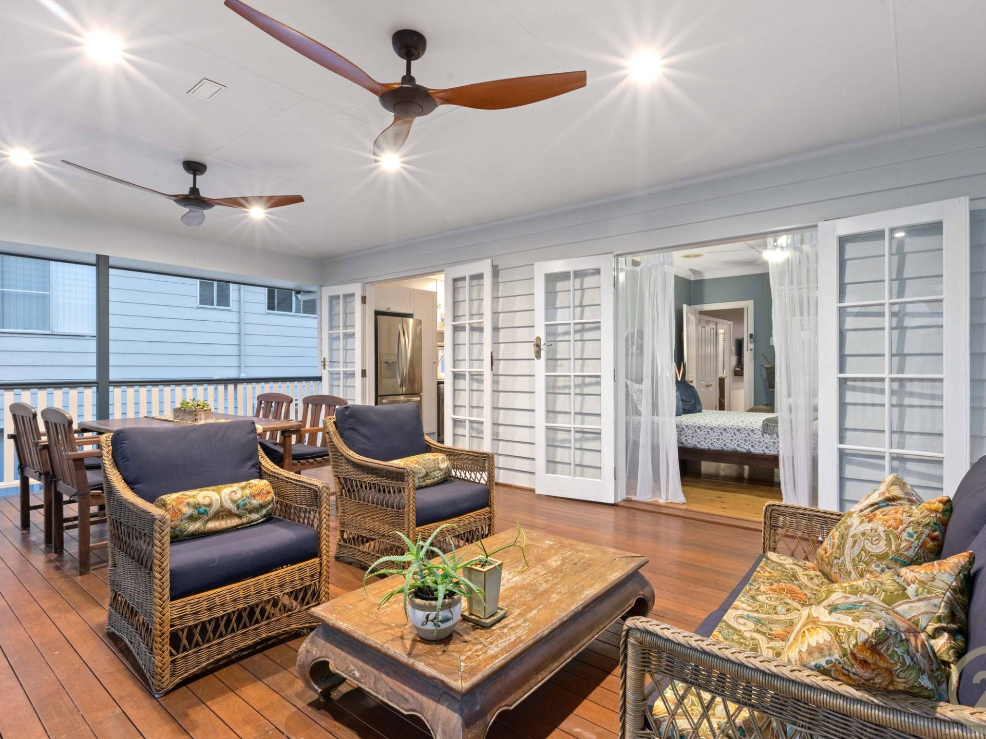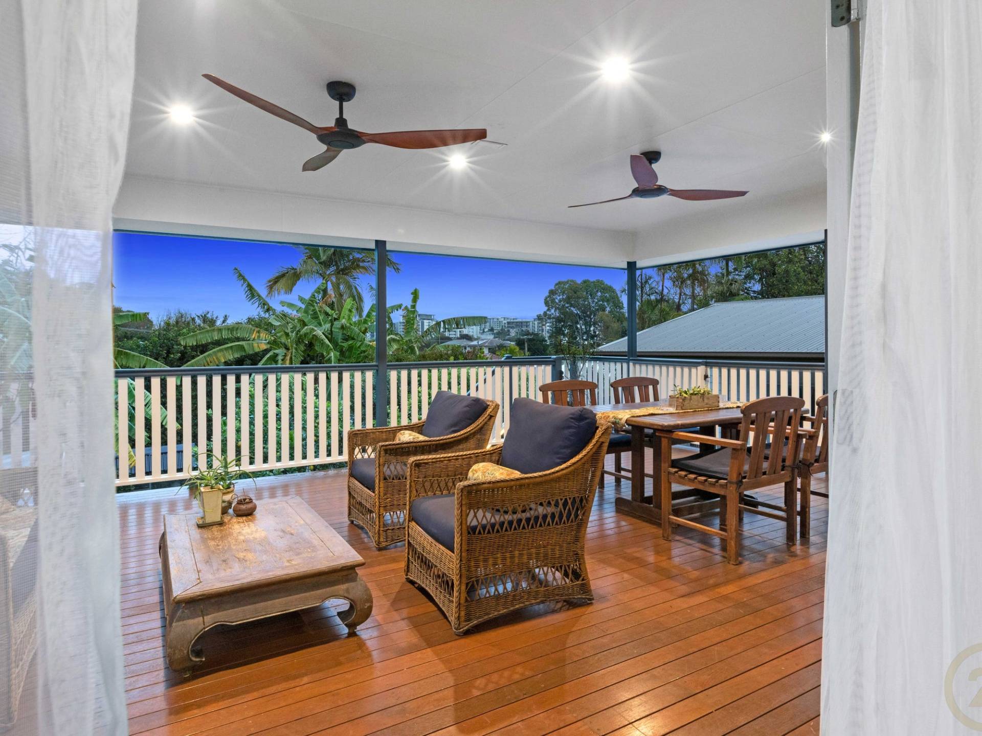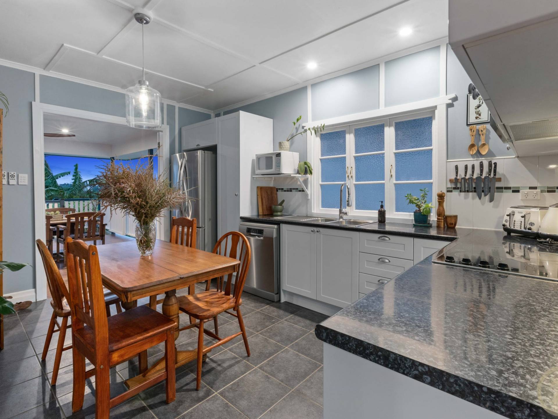 The recently renovated kitchen offers a striking modern colour palette, stainless steel appliances, black bench tops, and an abundance of cabinetry for storage. French doors from both the master bedroom and kitchen open out on to an expansive covered entertainer's deck allowing you to bring the outside in, with pleasant views of the back garden and surrounding neighbourhood.