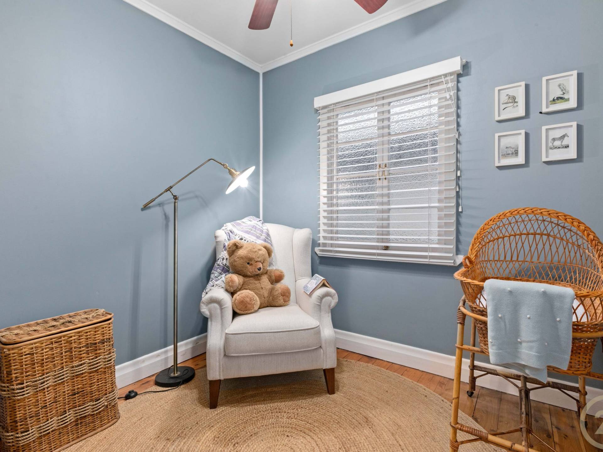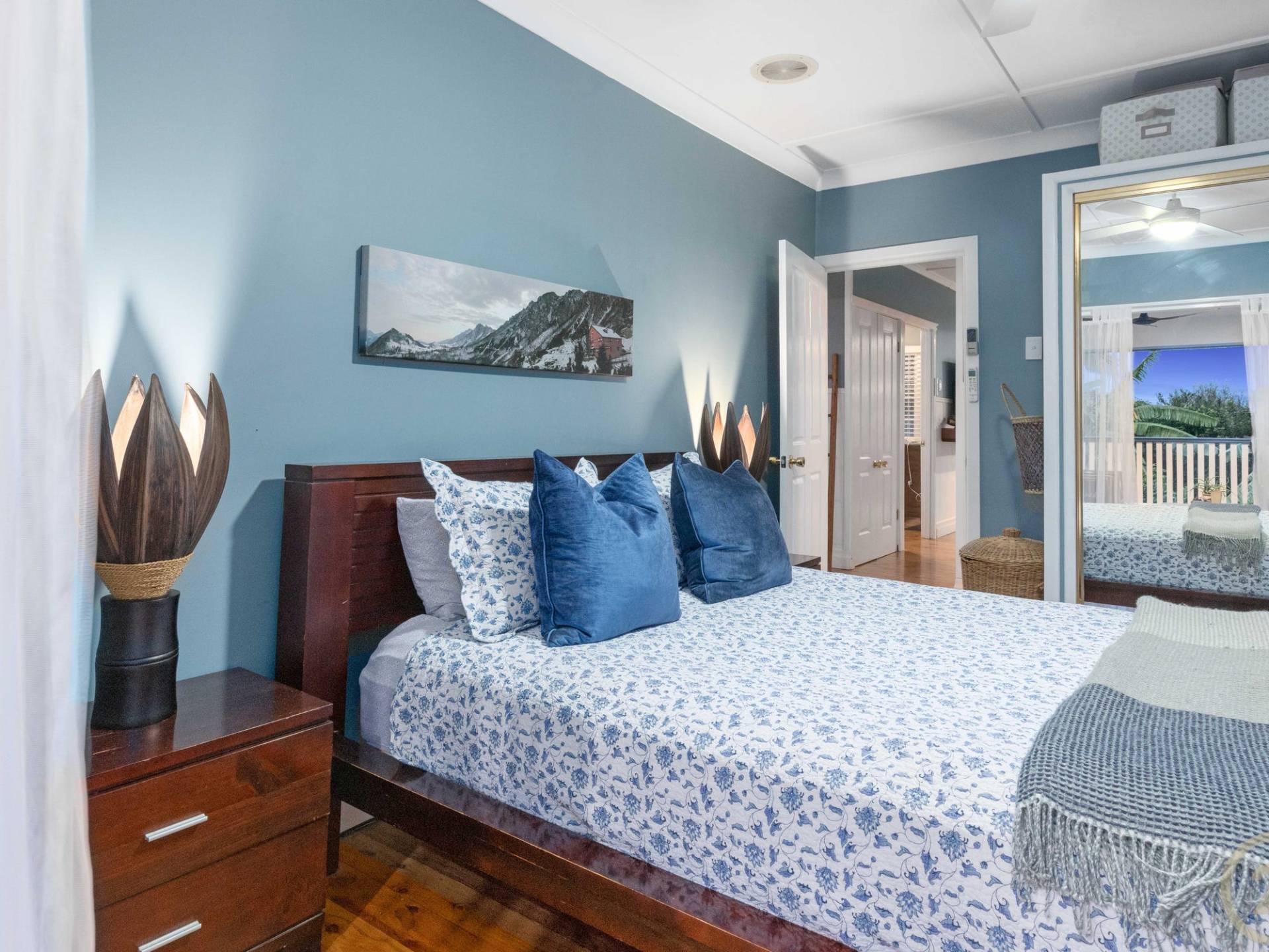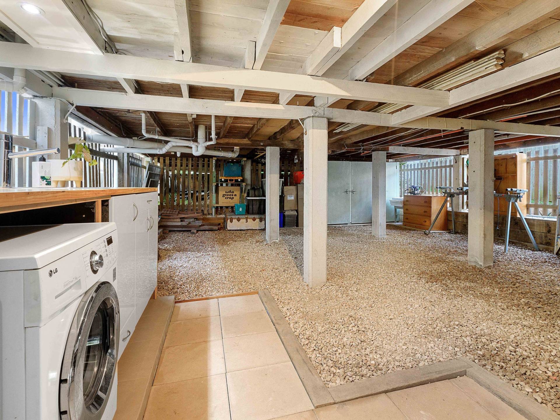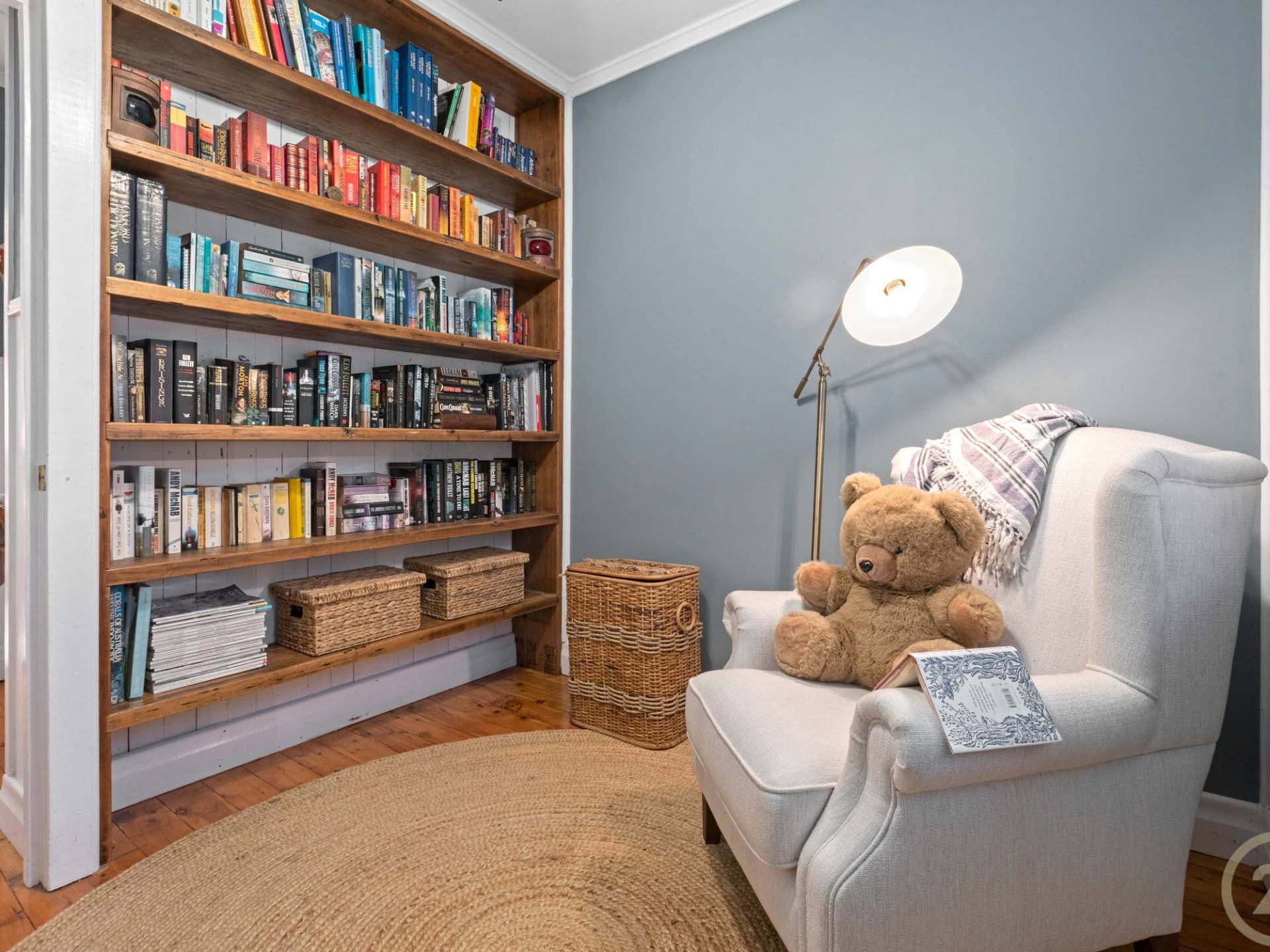 The lush green back garden includes: two large, raised vegetable gardens, orange, mandarin, lemon, feijoa, mulberry, blueberry, chilli, and lady finger banana trees, which provide an ample amount of food. The yard also features an outdoor shower, kitchen sink, and shelving for your plant collection. Plenty of grass will keep the little ones happy too.