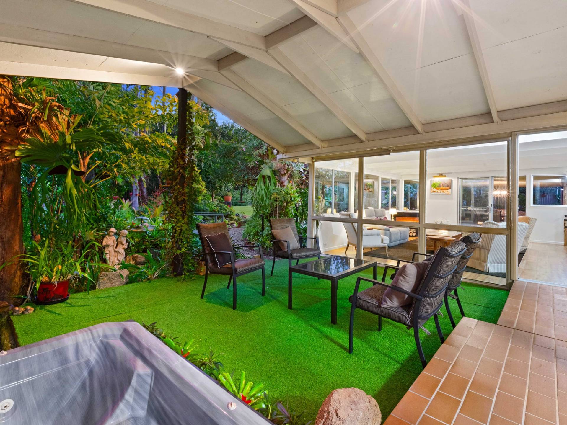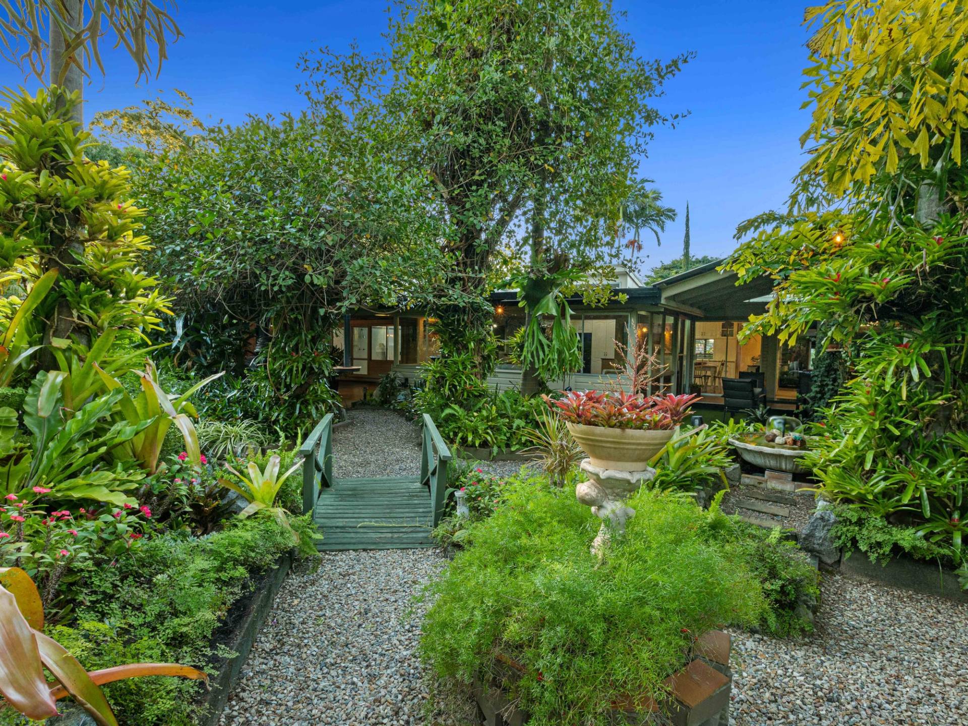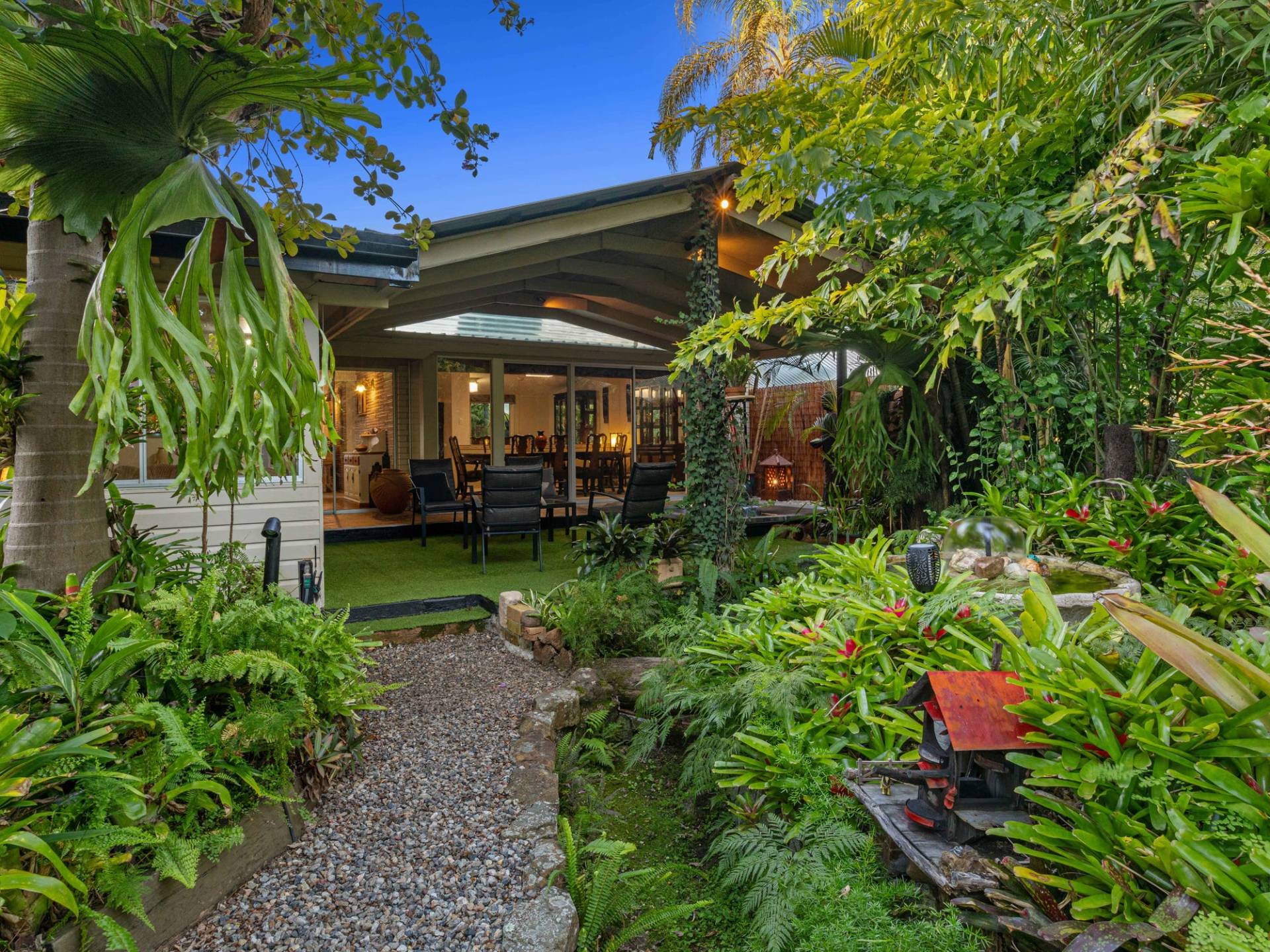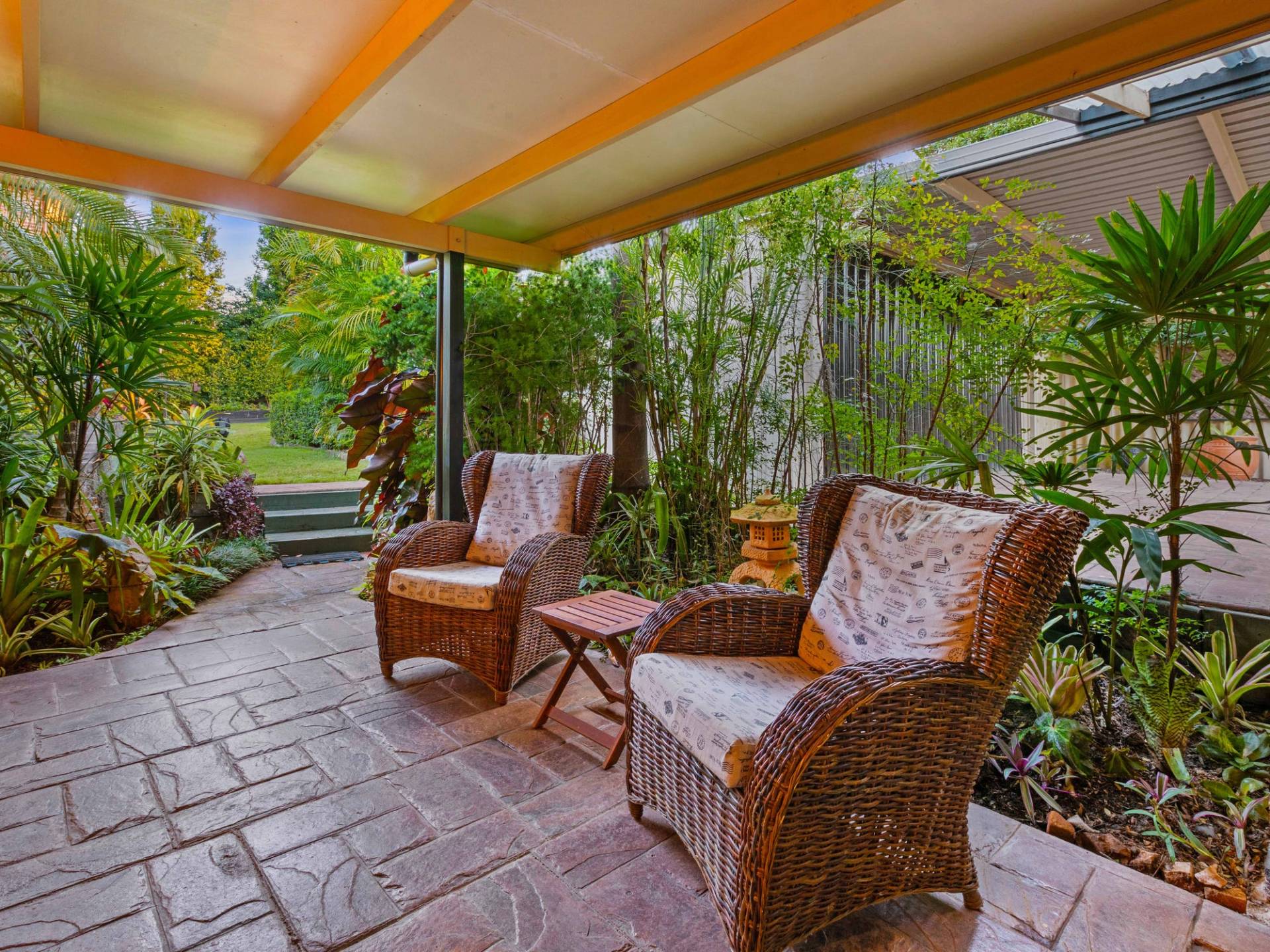 Over the years whilst we kept the 70's charm, we also have improved and added value with love and care to the main house where it is offering a contemporary feel to the lifestyle yet exposing that unique outlook when compared to the newly built properties. The home has very wide overhangs making a very cool home, facing north, no direct sun in summer. We have taken so much pride in showing off our little golden sanctuary to many people over the years who have stopped to admire the garden, and many have been invited to see the rain forest back garden.