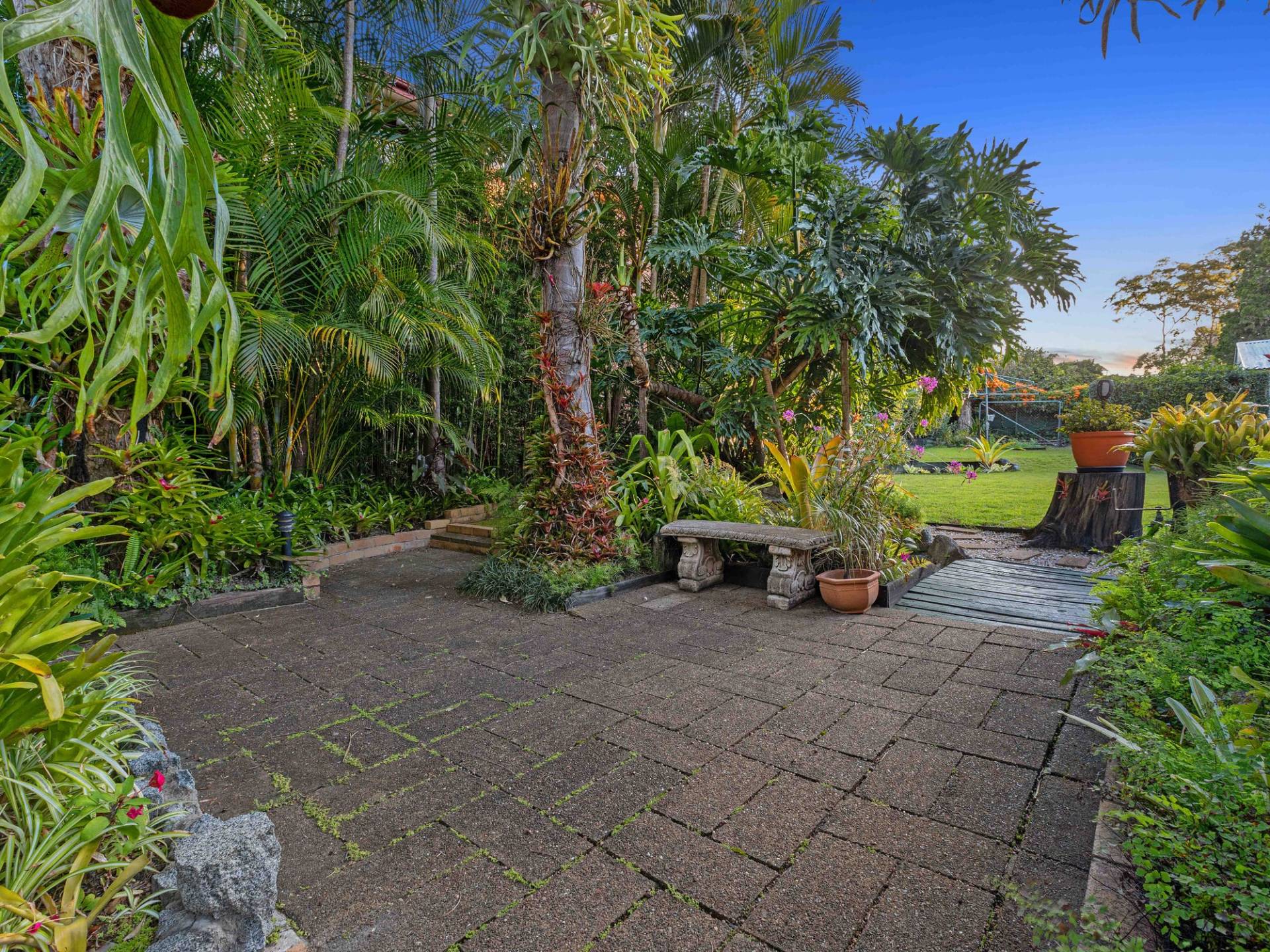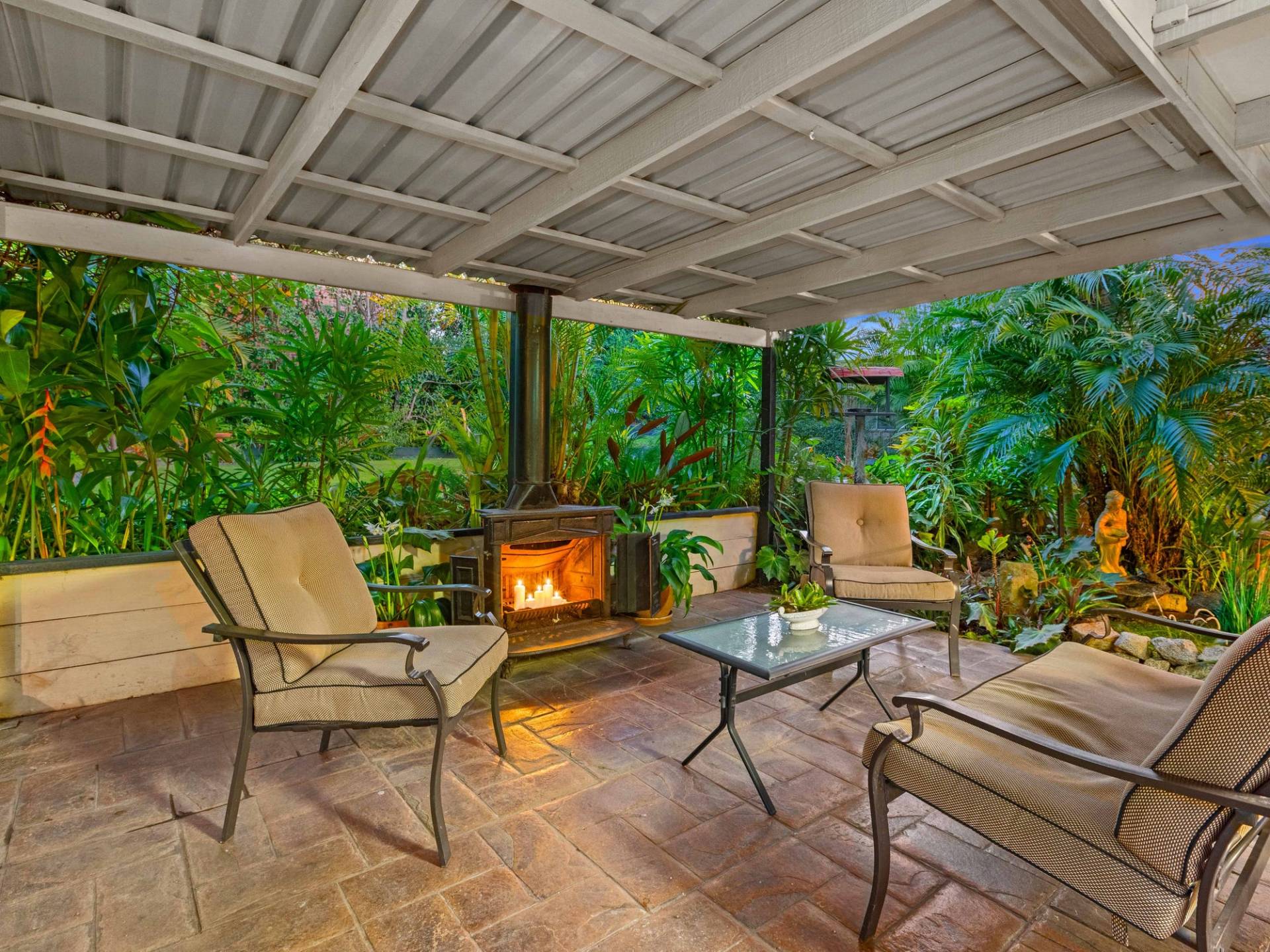 - Outdoors, a tranquil and easy-care botanical garden takes you to a splendid tropical paradise with an enormous, covered back patio, water features, settled garden and an open area. A nursery owner has assessed that there would be $150K worth of plants and landscaping in the property.