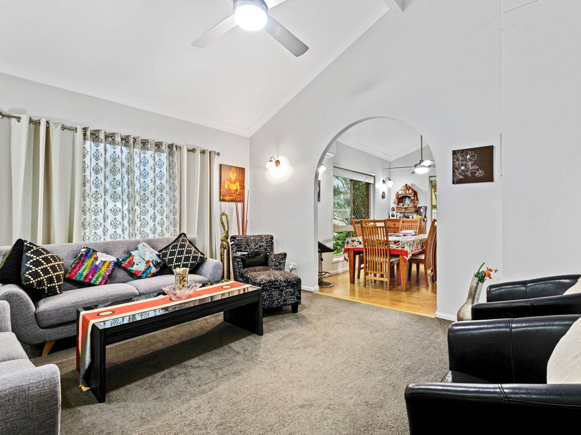 As you enter through the foyer and into the formal lounge room you are welcomed by the double-height vaulted ceiling and feature window with views of the surrounding vegetation.