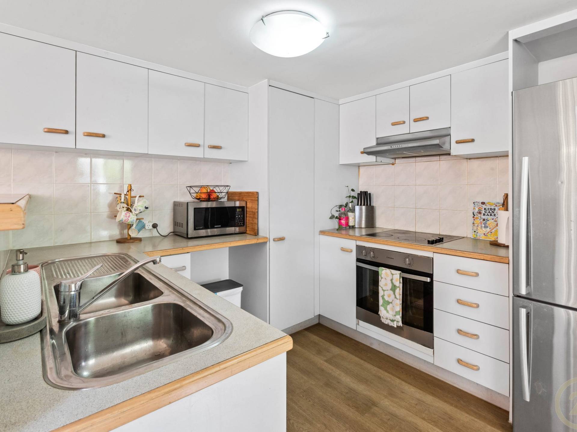 - Modern kitchen with electric cooking and large pantry
