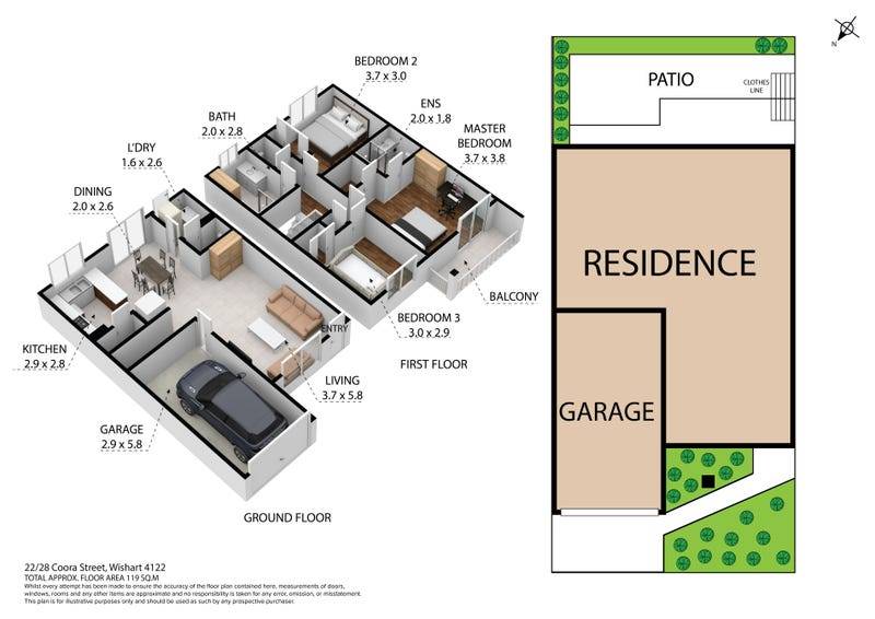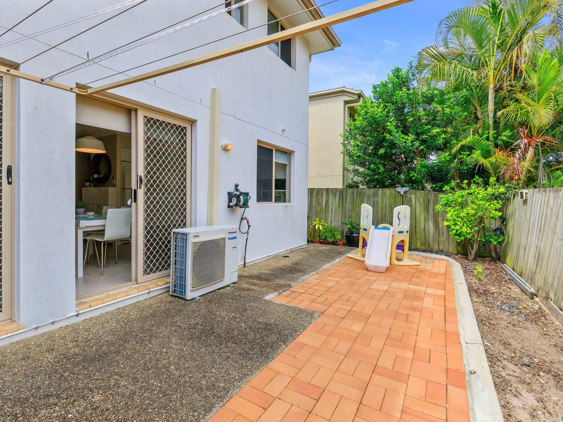 You enter the home into the air-conditioned open plan living, kitchen and dining area which flow onto the outdoor patio / courtyard. On the upper level there are three good size bedrooms, all are air-conditioned and have built-ins; the master bedroom also has an ensuite, walk-in-robe and a private balcony. The main bathroom has a shower, vanity and large linen cupboard plus there is a separate toilet. There's plenty of storage with clever cupboards above the internal stairs and another linen cupboard in the hall.