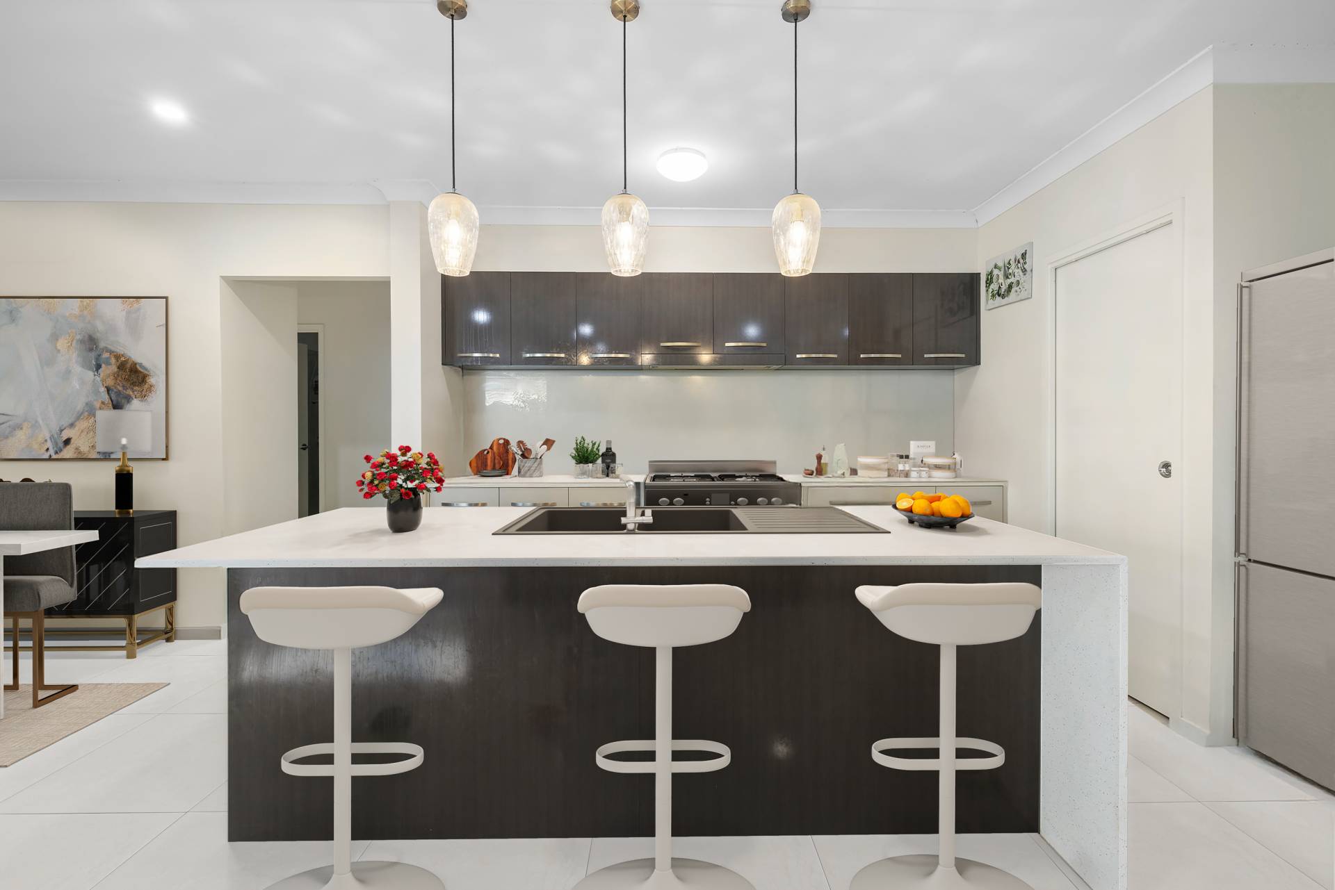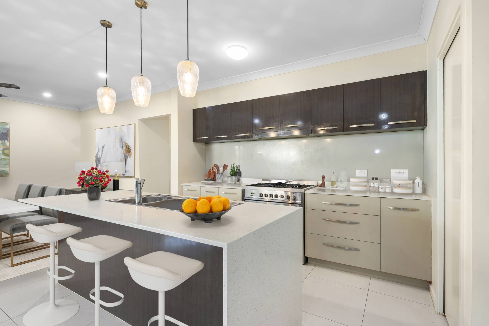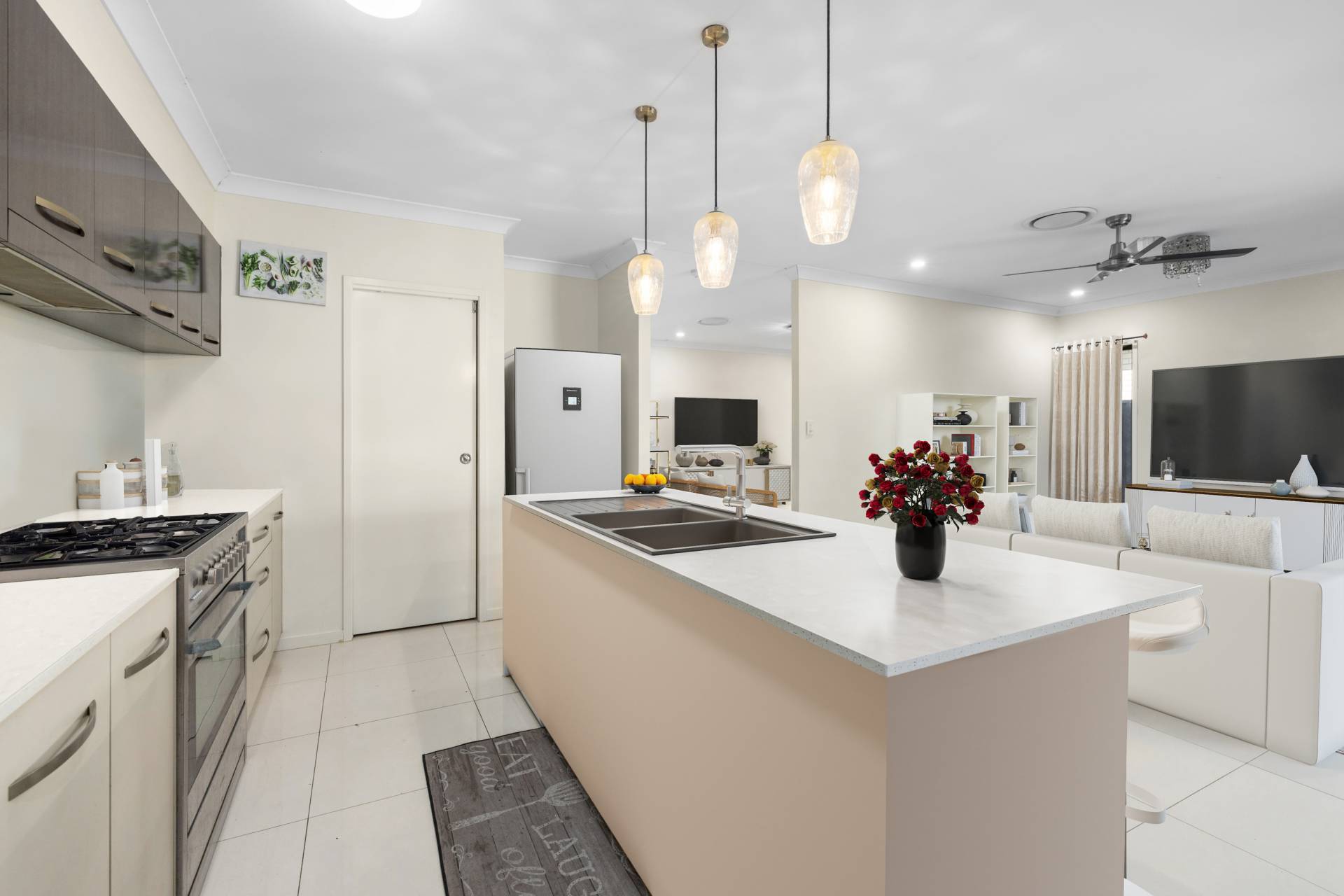 • Stylish, contemporary kitchen with stone benchtops, 6.6kW gas stove with supply of town gas, quality appliances, and ample pantry storage