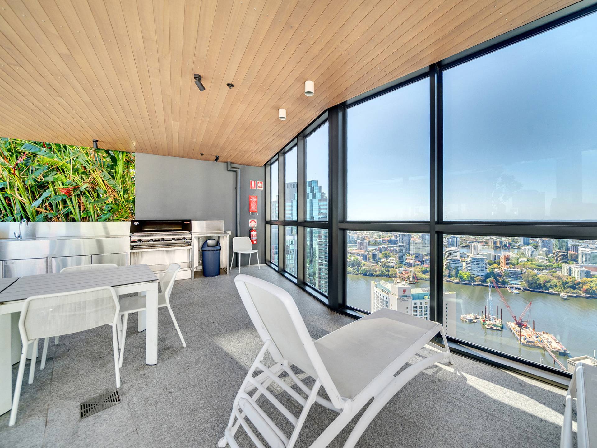- Residents only access rooftop swimming pool, gym and BBQ entertainment area overlooking Brisbane river
