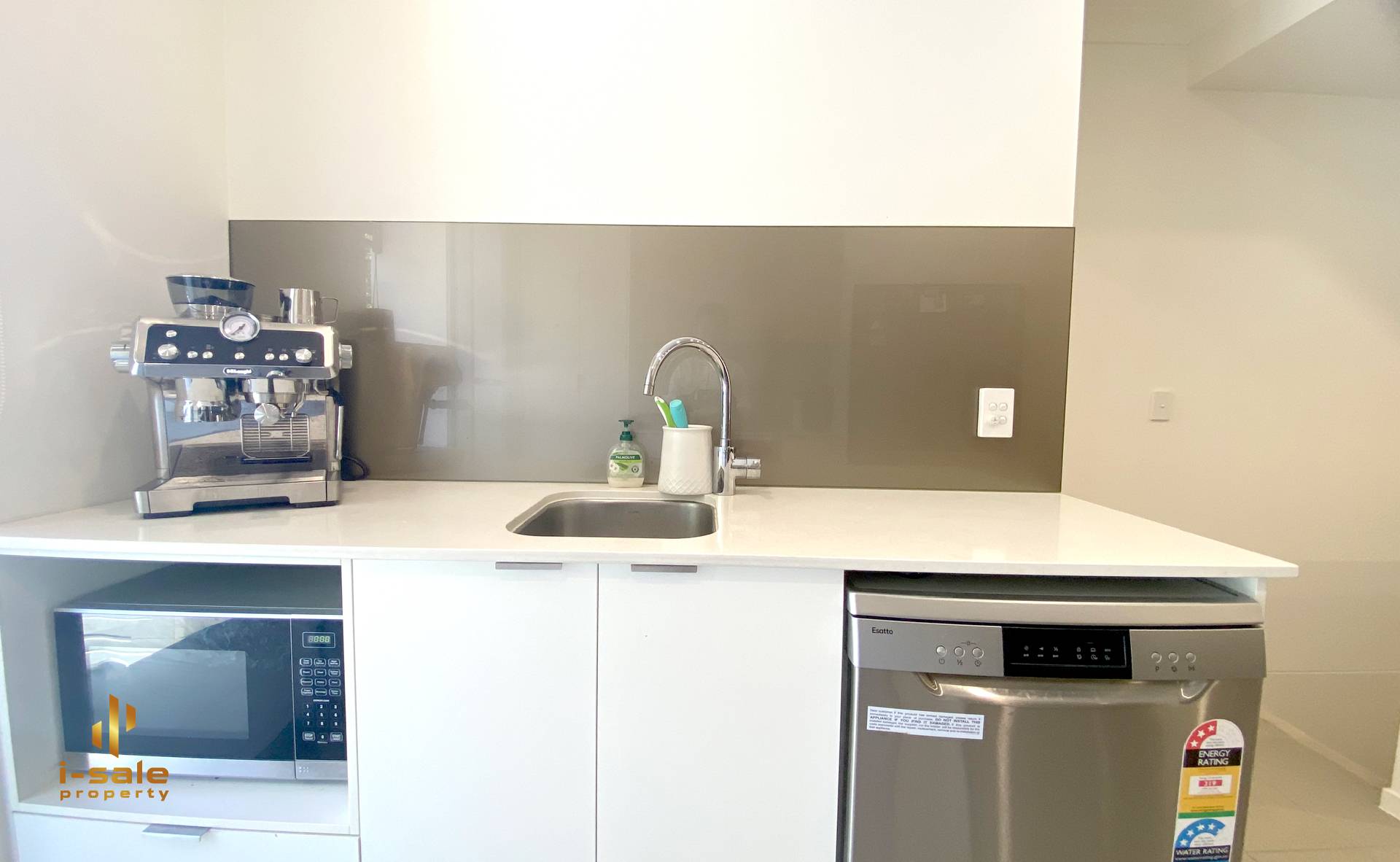 Modern interiors and an abundance of natural light, makes this two bedroom townhouse within the sought after Emerald Lakes Estate classy and contemporary. As you enter this bespoke apartment, the seamless open floor design is inclusive of the kitchen, living and dining zones. From the living area, there is a natural connection to an enclosed balcony, this provides an additional space for your morning routine or to enjoy coffee with friends.