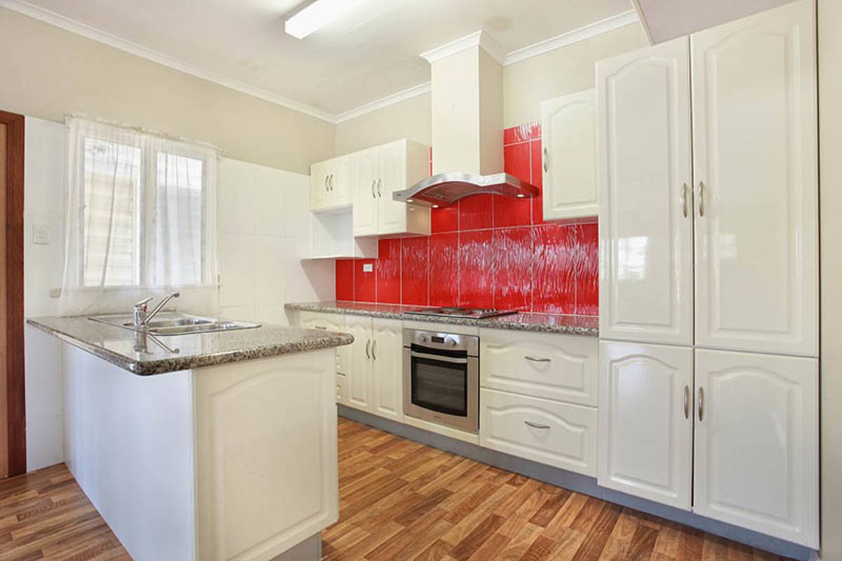 – Well-equipped renovated kitchen with stone bench top, dishwasher and tiles splash back